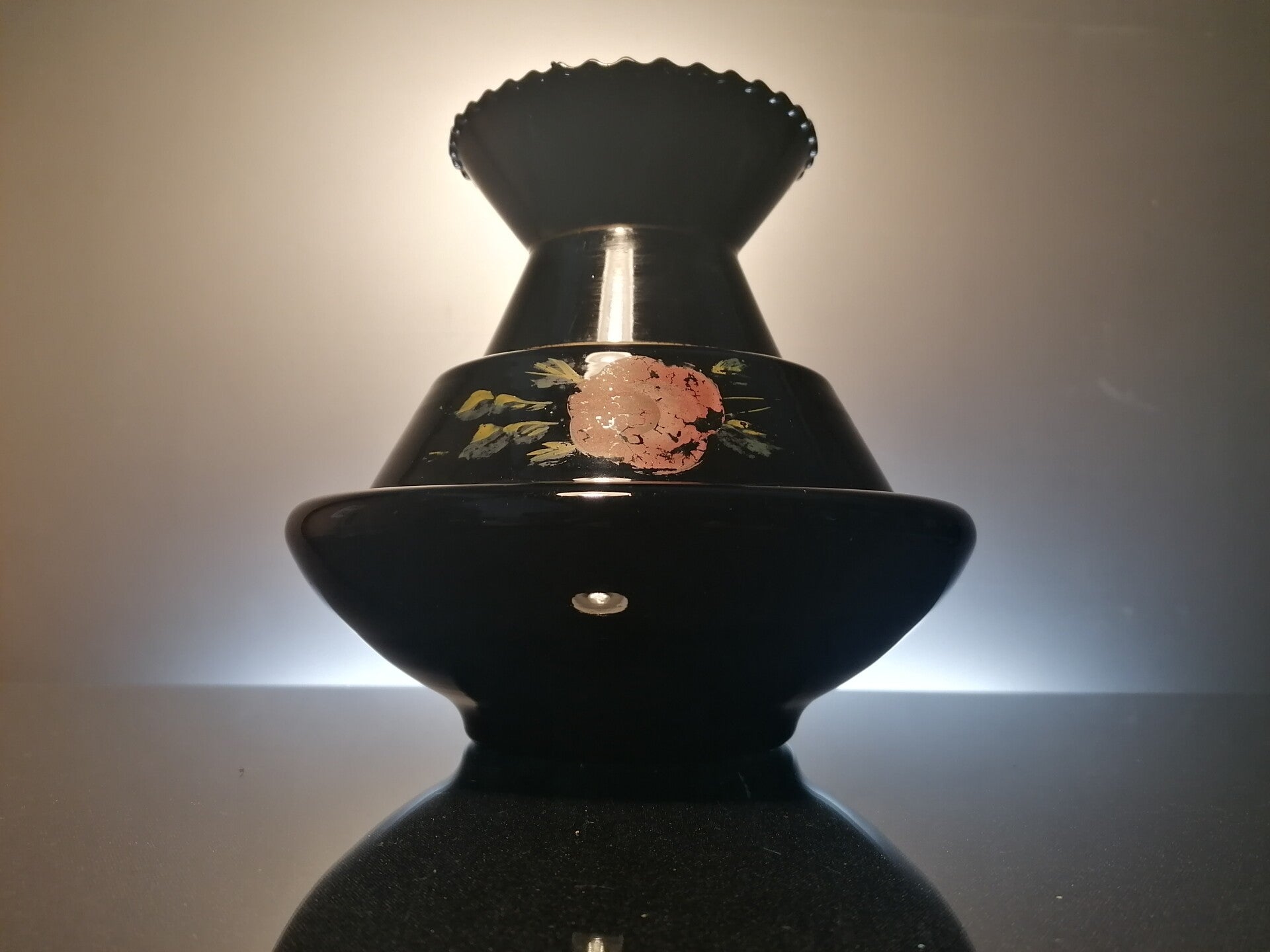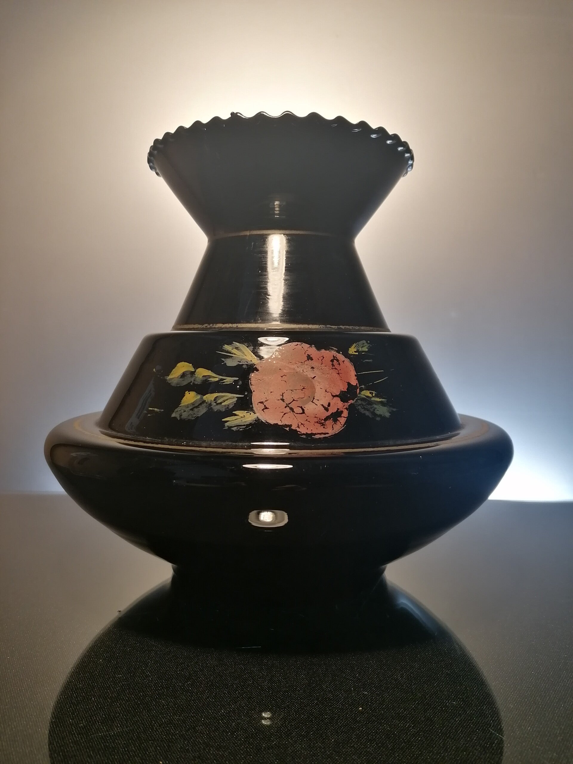 Black colored art deco vase, made at the beginning of the 20th century in Belgium.
