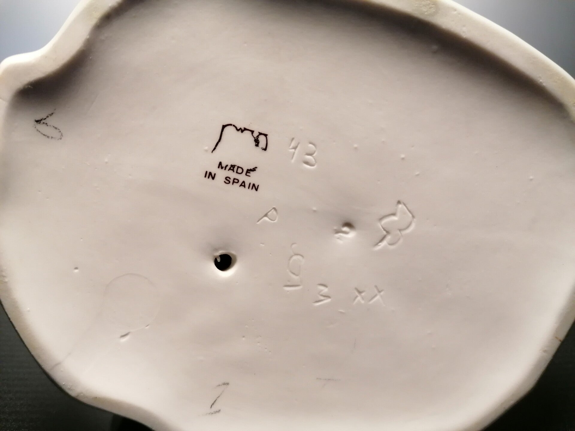 This figurine was made in the famous porcelain factories of Valencia in Spain.