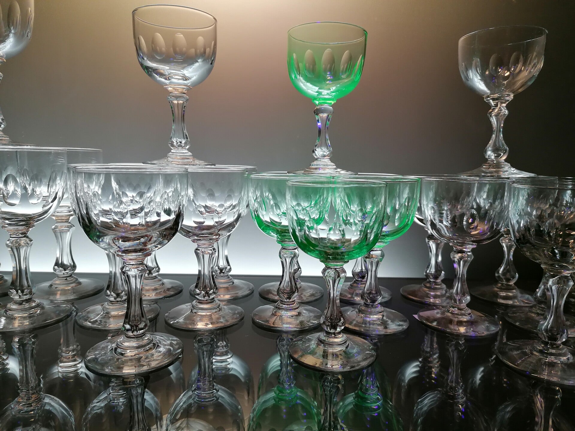 Very beautiful antique glass tableware, made in the 2nd half of the 19th century in Belgium.