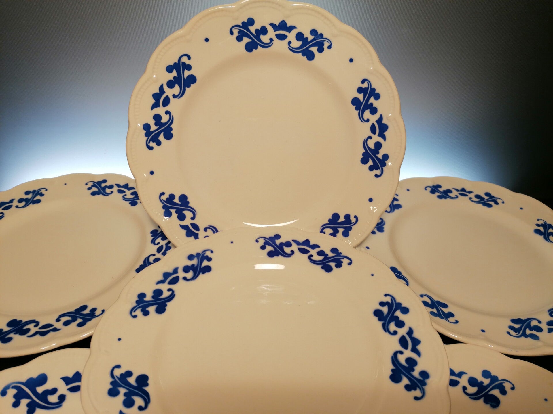 These antique plates were made by the famous manufacturer "Boch Frères" in the middle of the 20th century and belong to the "oak leaf with crown" service line.