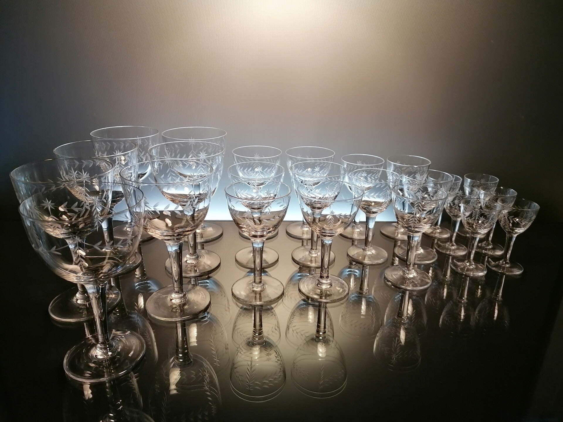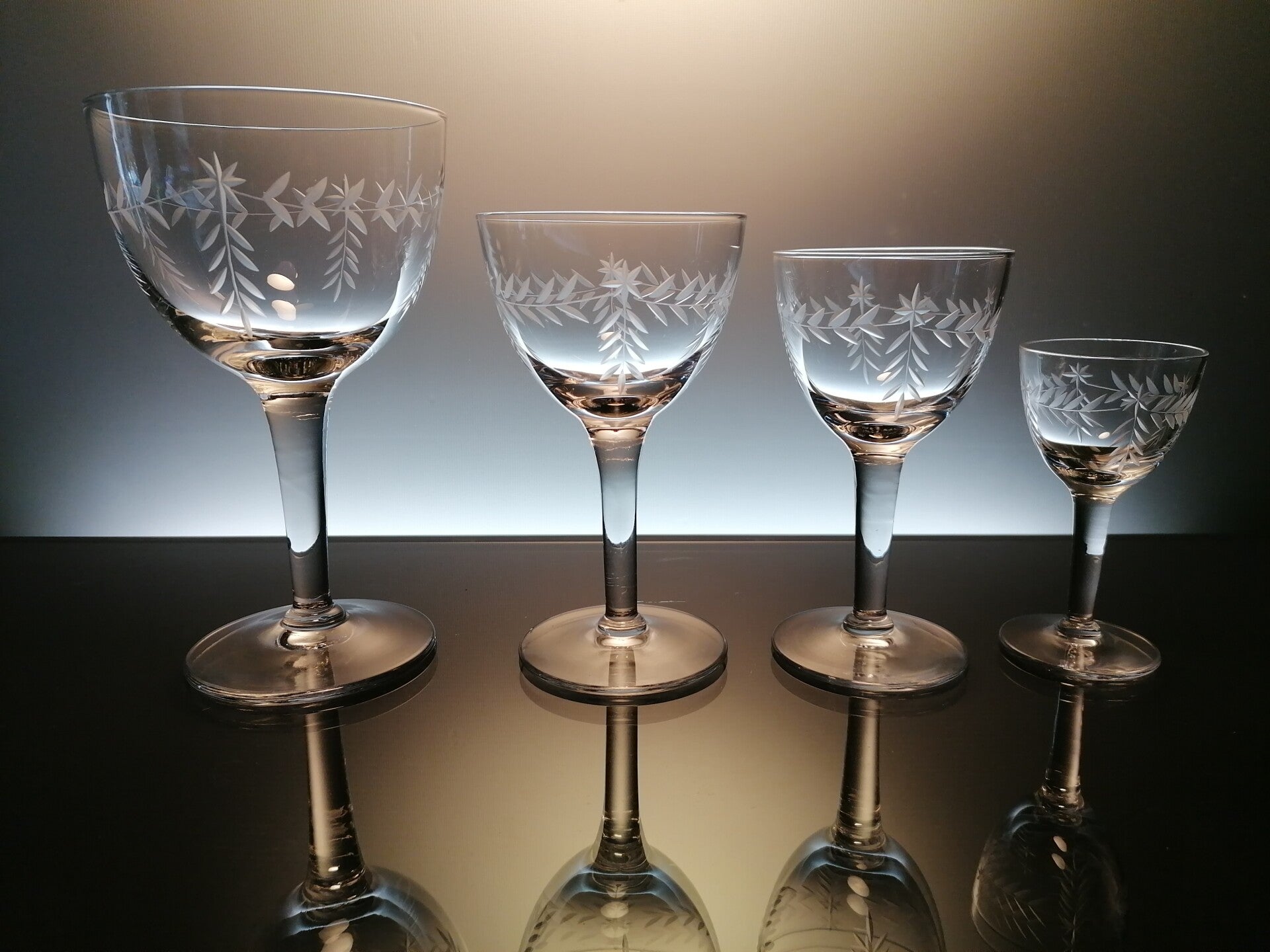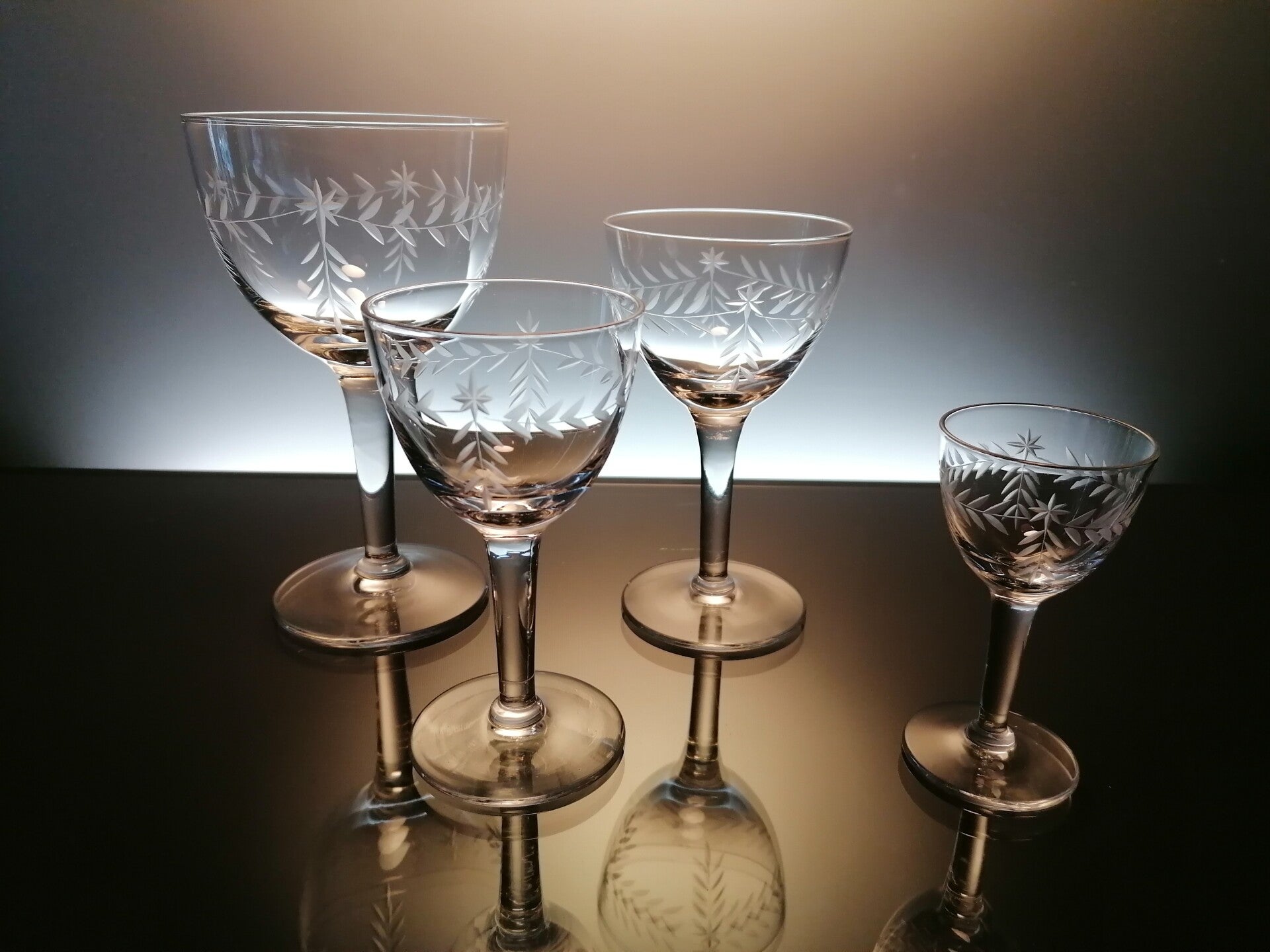 Very beautiful antique glass tableware, made in the second part of the 19th century in France.