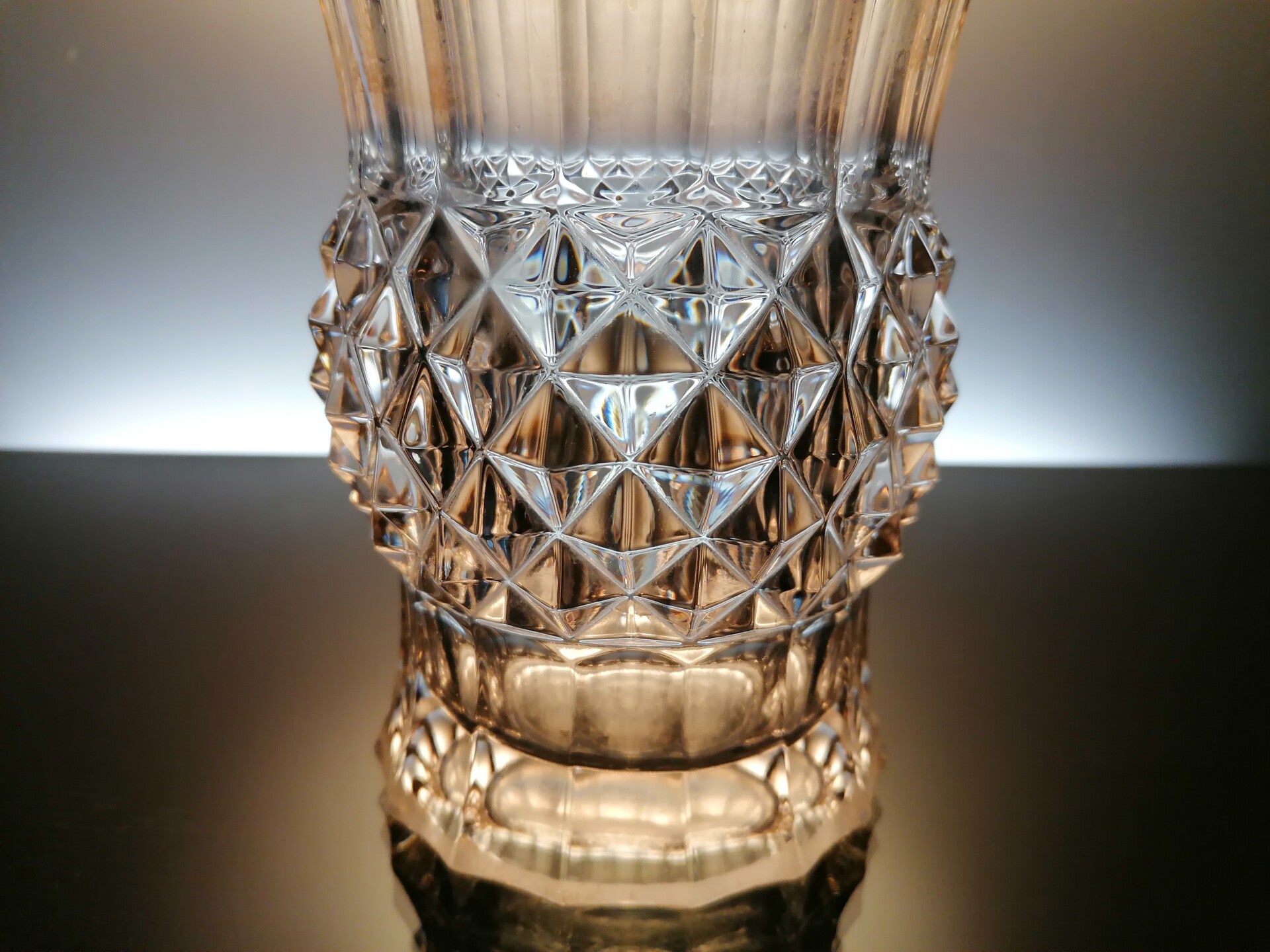 The vase is made of cast and pressed glass, with a crystal content to achieve a more beautiful shine.