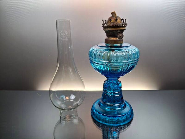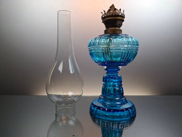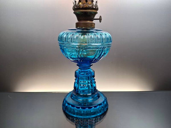 Belgian 19th Century blue glass Oil Lamp “L&B”