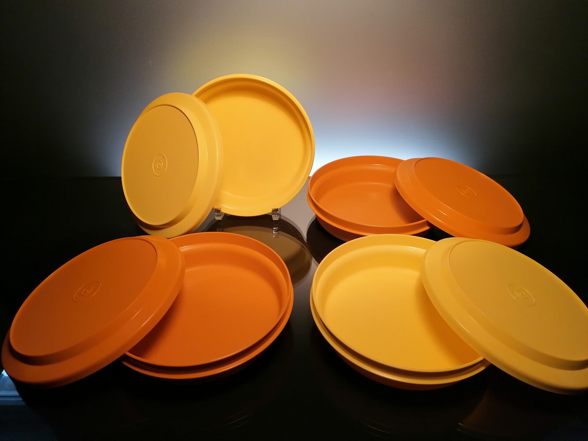 These beautiful storage boxes were made in the middle of the 20th century by the world-famous Belgian manufacturer Tupperwaere.