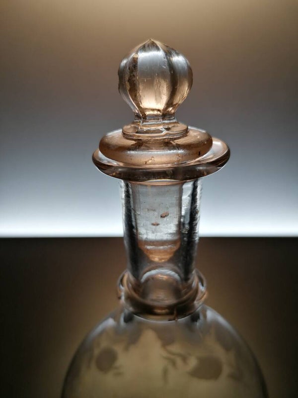 The decanter is then beautifully decorated with abstract flowers in the acid etching technique.