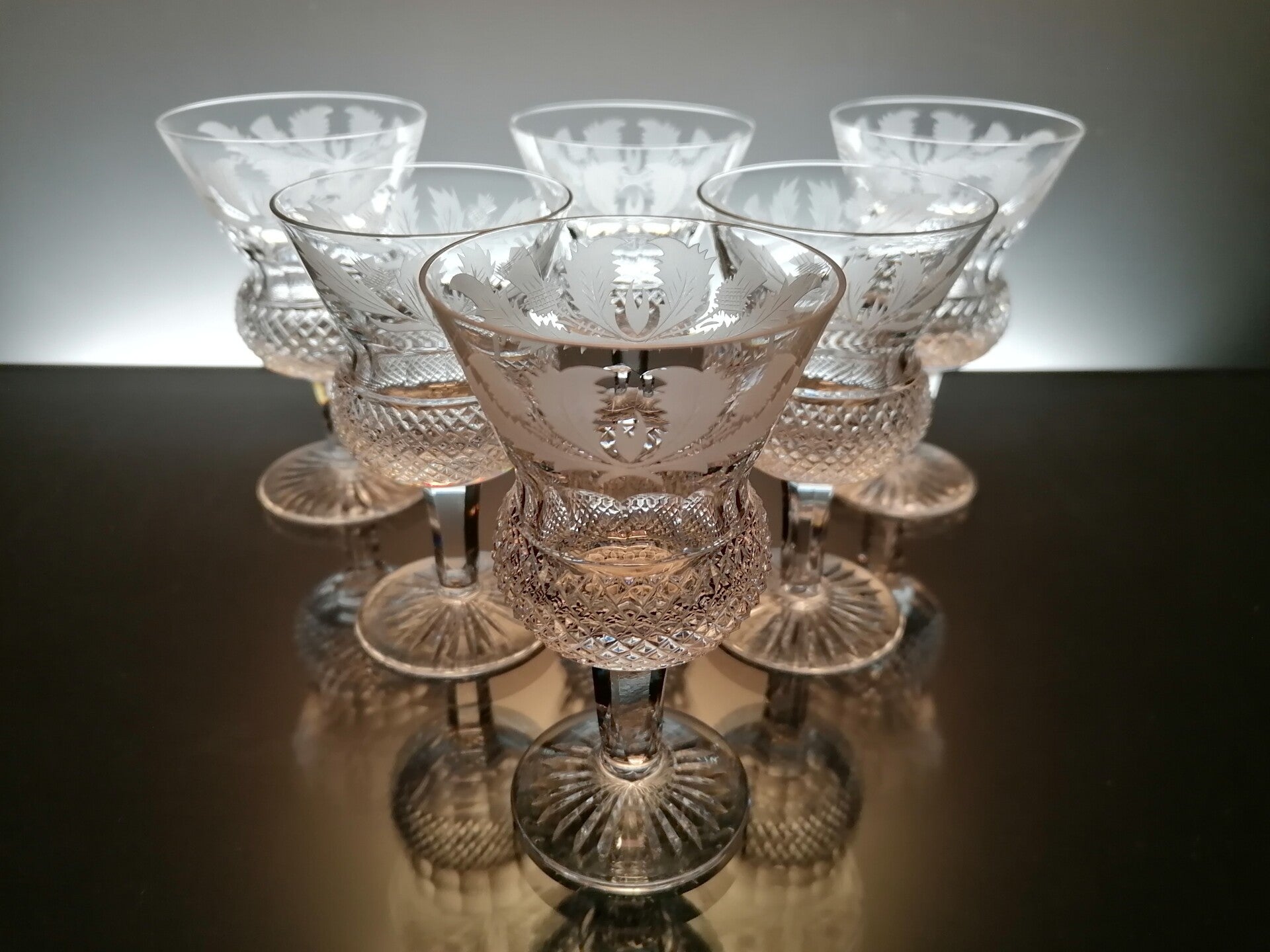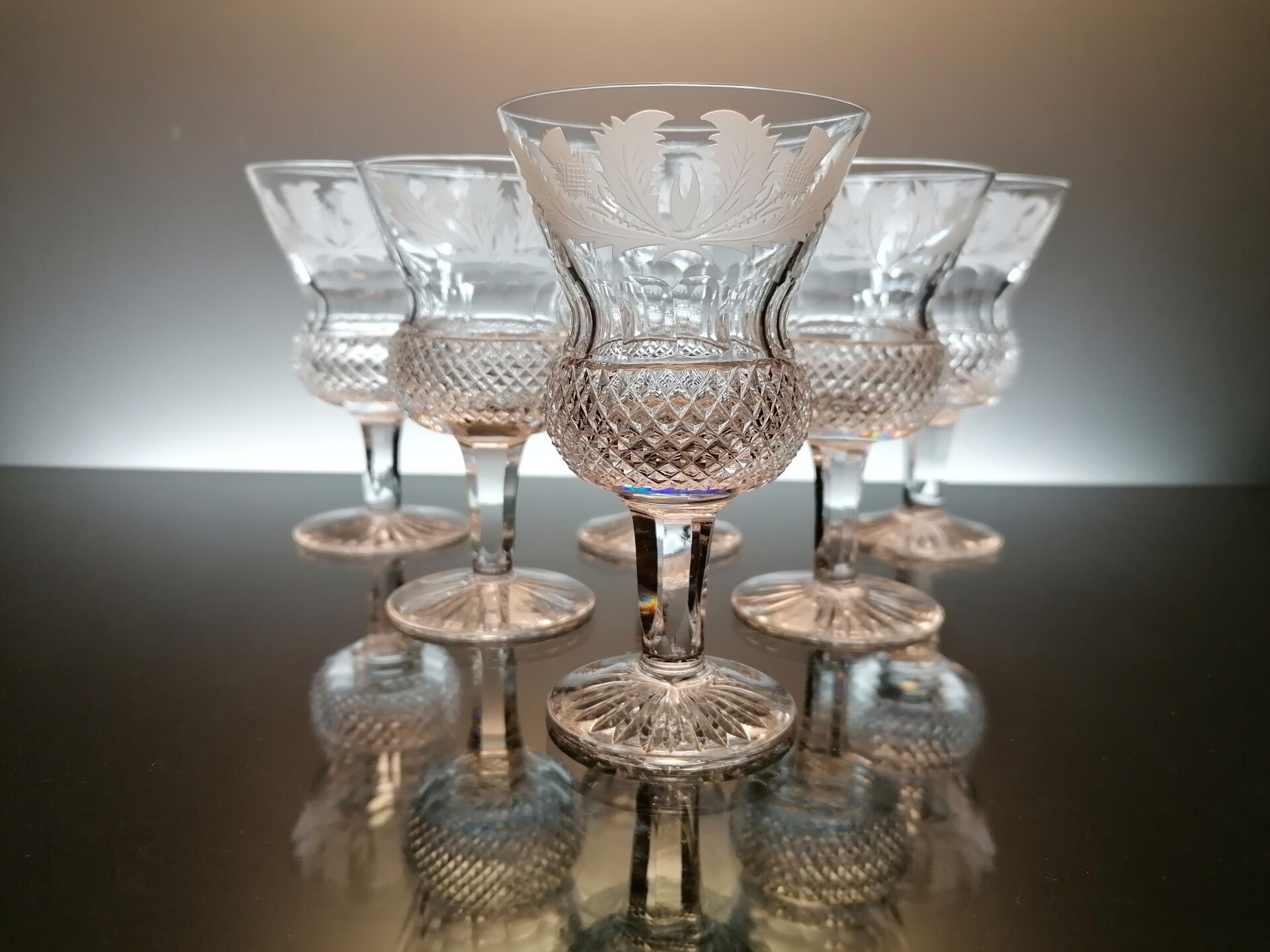 6 Scottish crystal wine glasses "Royal Edinburg - thistle"