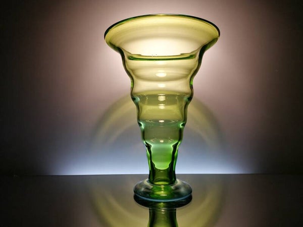 The vase is made in green mouth-blown glass with a quality of crystal to give a more beautiful shine.
