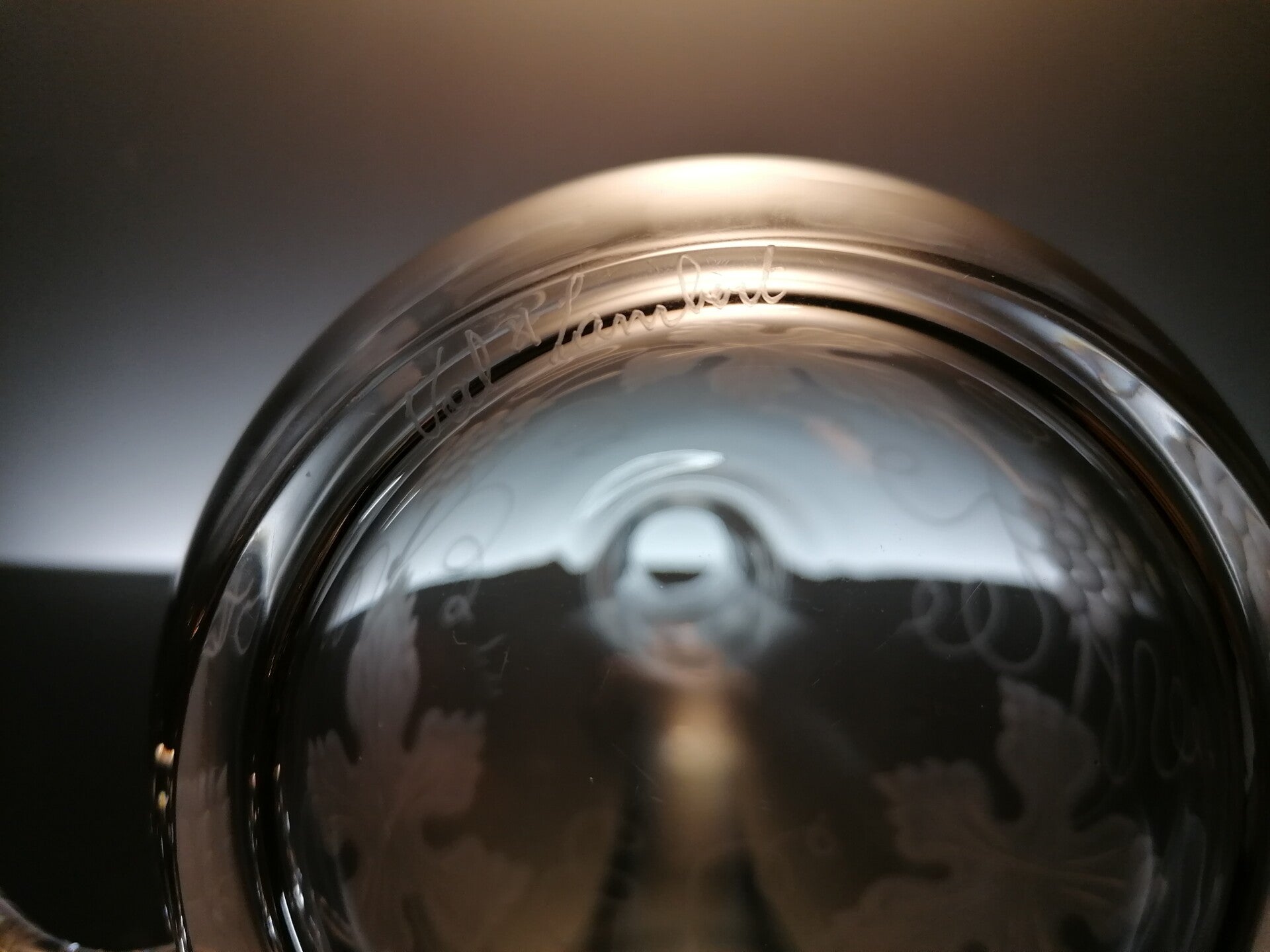 The carafe is signed at the bottom by the manufacturer.