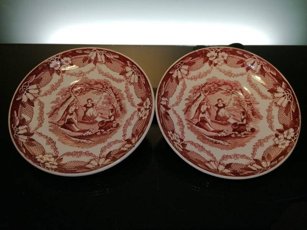 2 antique ceramic plates “Girls”
