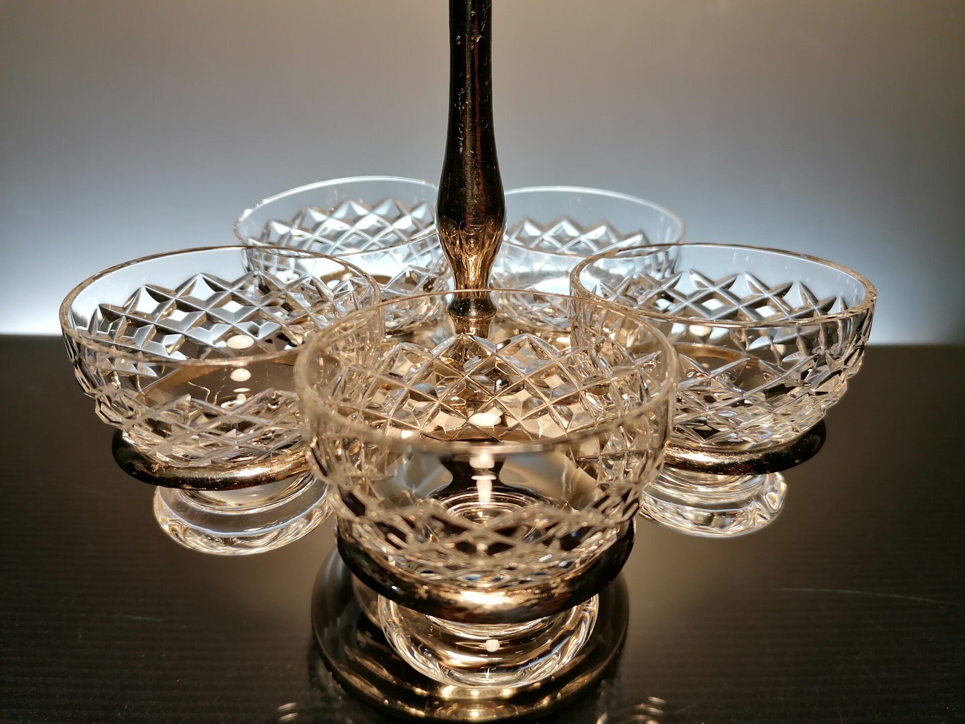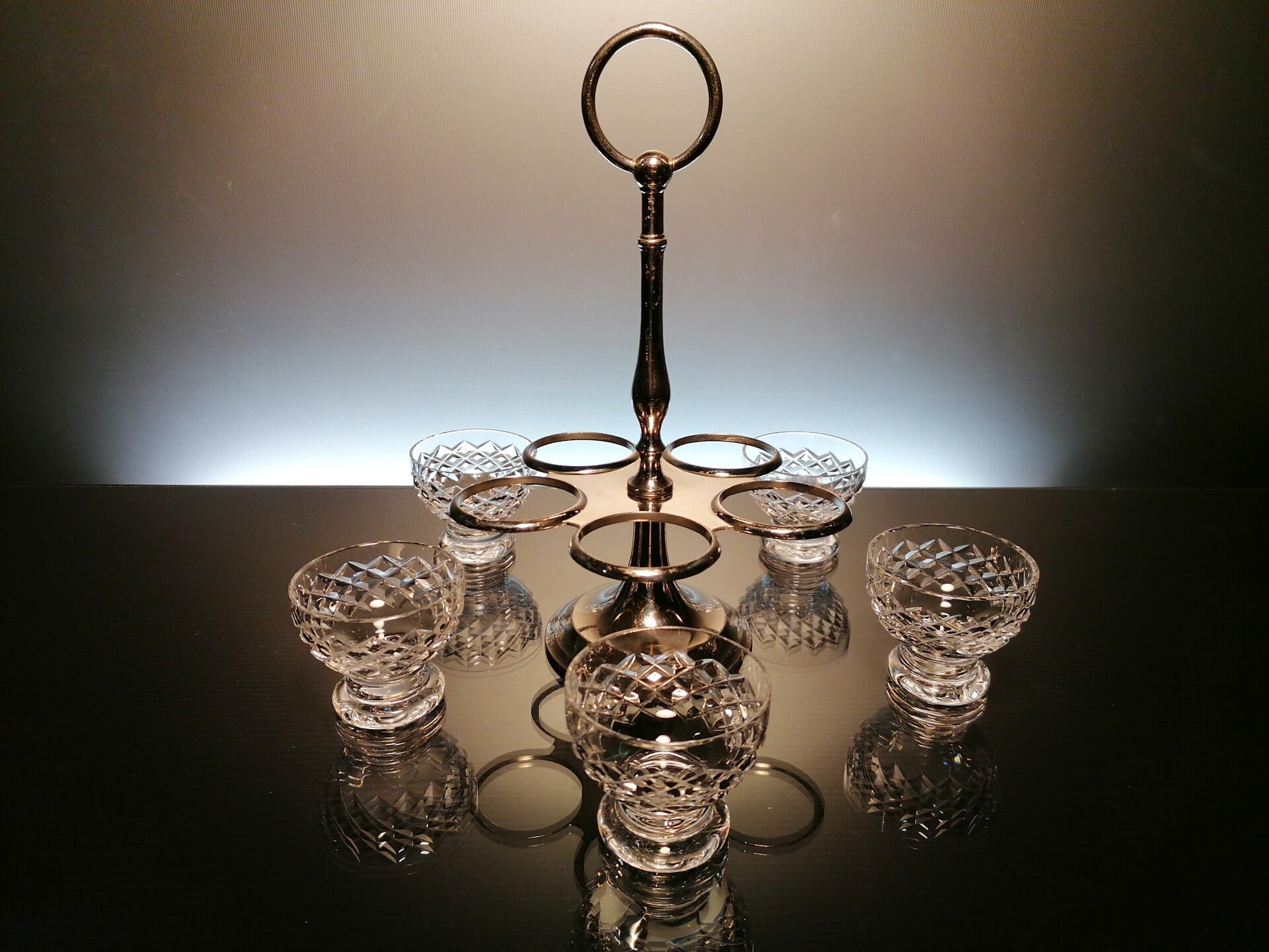 Crystal cups in silver-plated holder