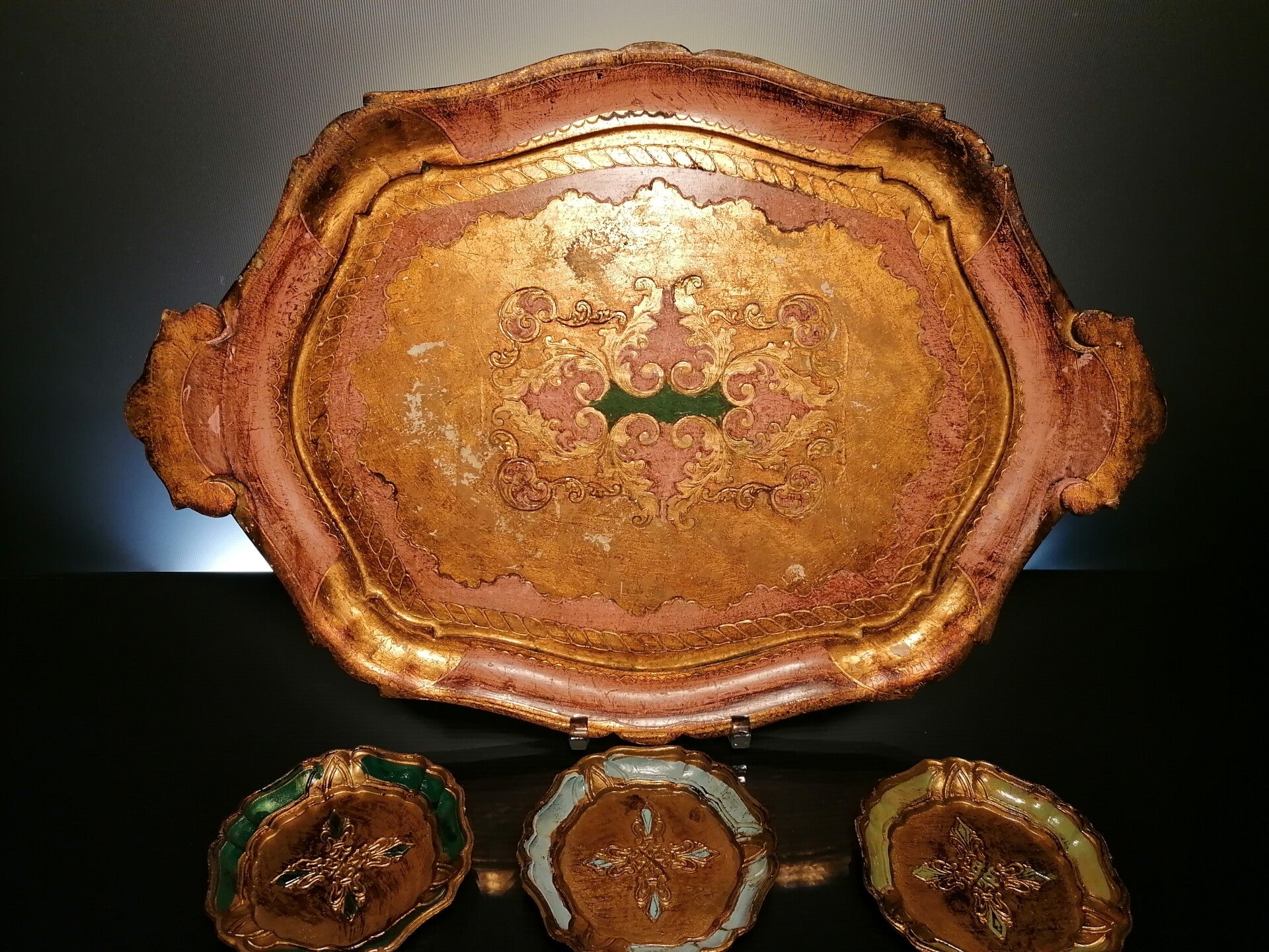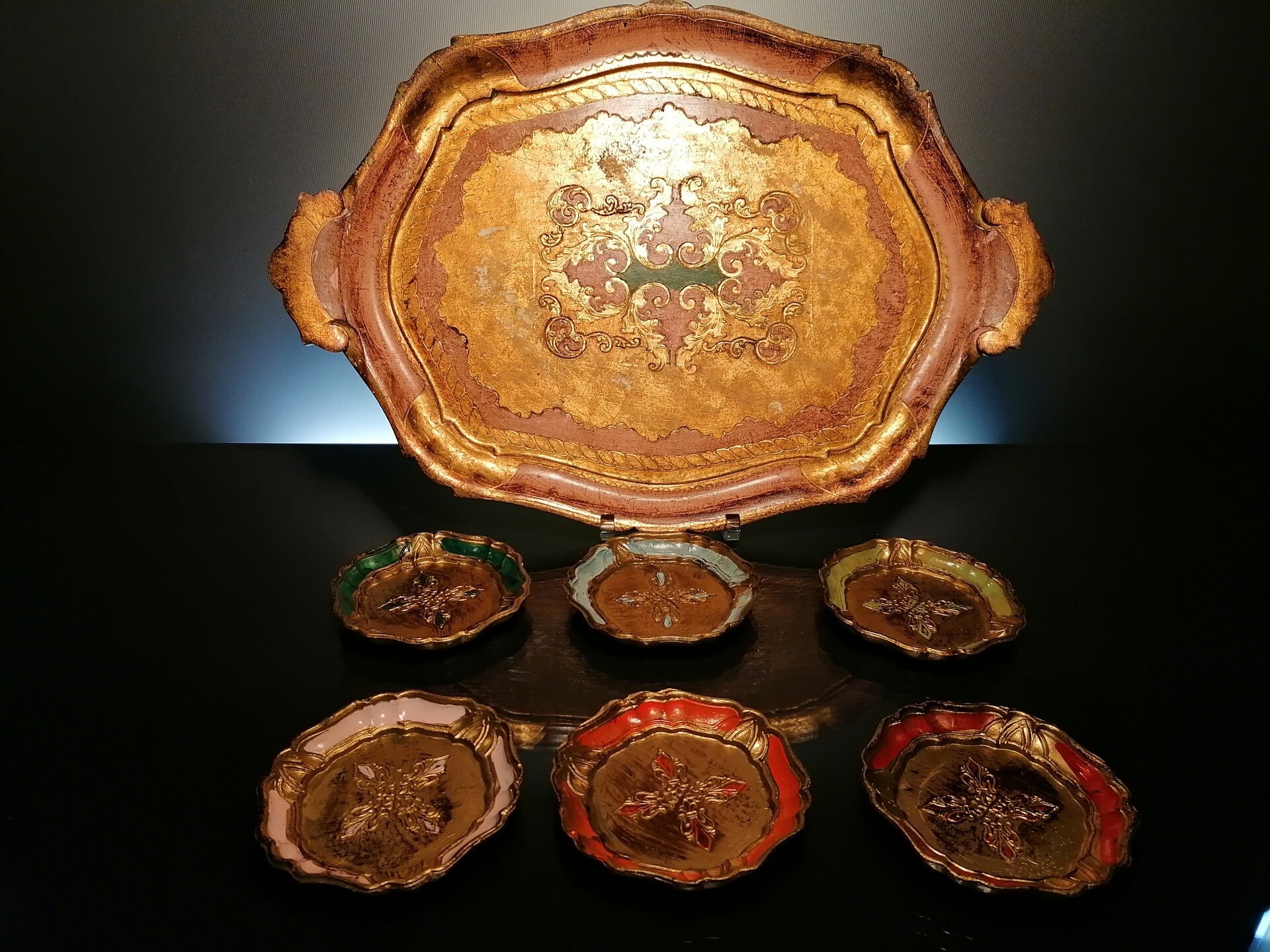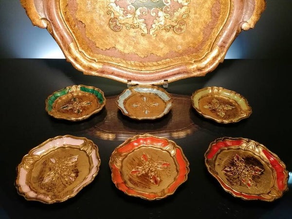 Wooden tray & 6 coasters “Florentine”