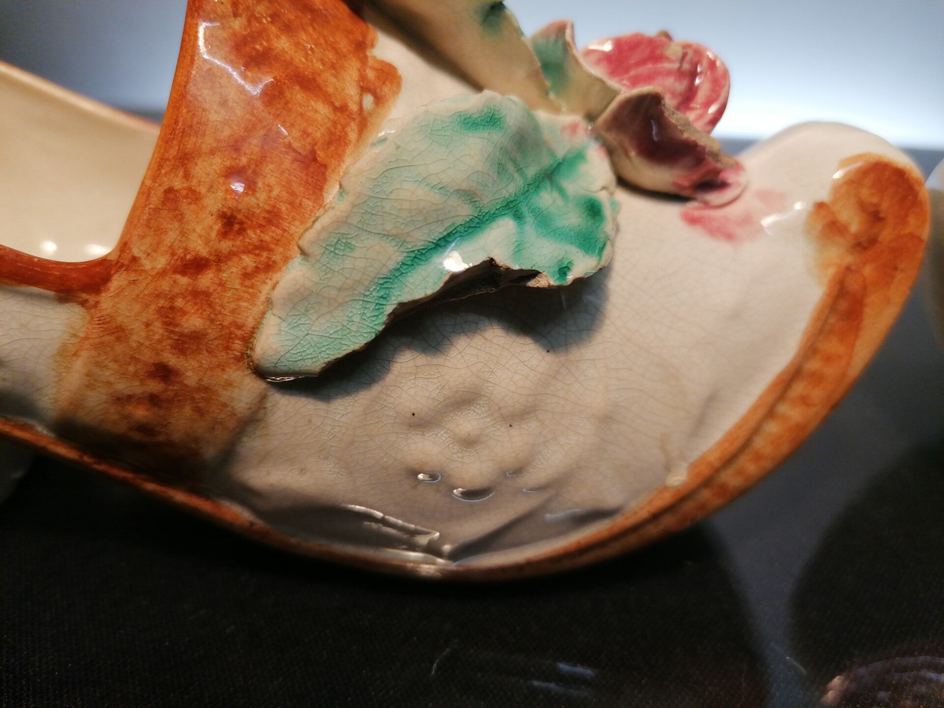 After assembling the object in clay, everything was carefully painted by hand with glaze.