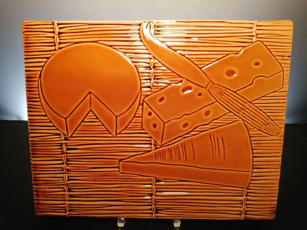The cheese board is made of cast ceramic and finished with a light brown glaze.