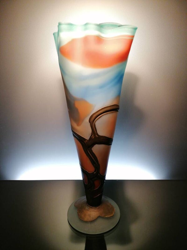 Very beautiful colorful vase, made in the middle of the 20th century by the Italian artist F. Silva.