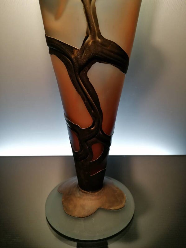 A copper decoration has been applied around the vase, giving you the impression that the vase is supported by this copper decoration.