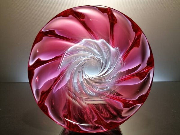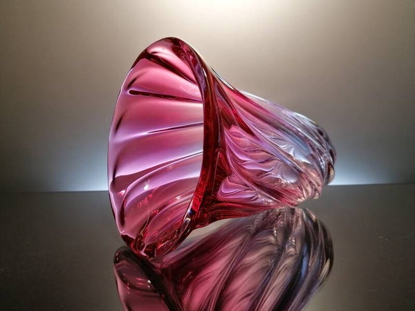 The vase is made of drawn and blown crystal. This one has very nice curved shapes, which makes it look very vintage and modern.