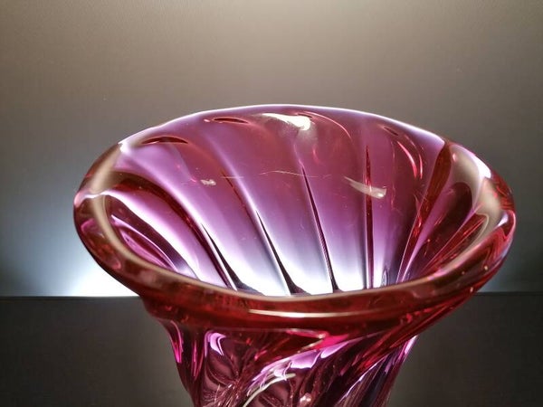 Val Saint Lambert clear – purple crystal vase “Torsade”