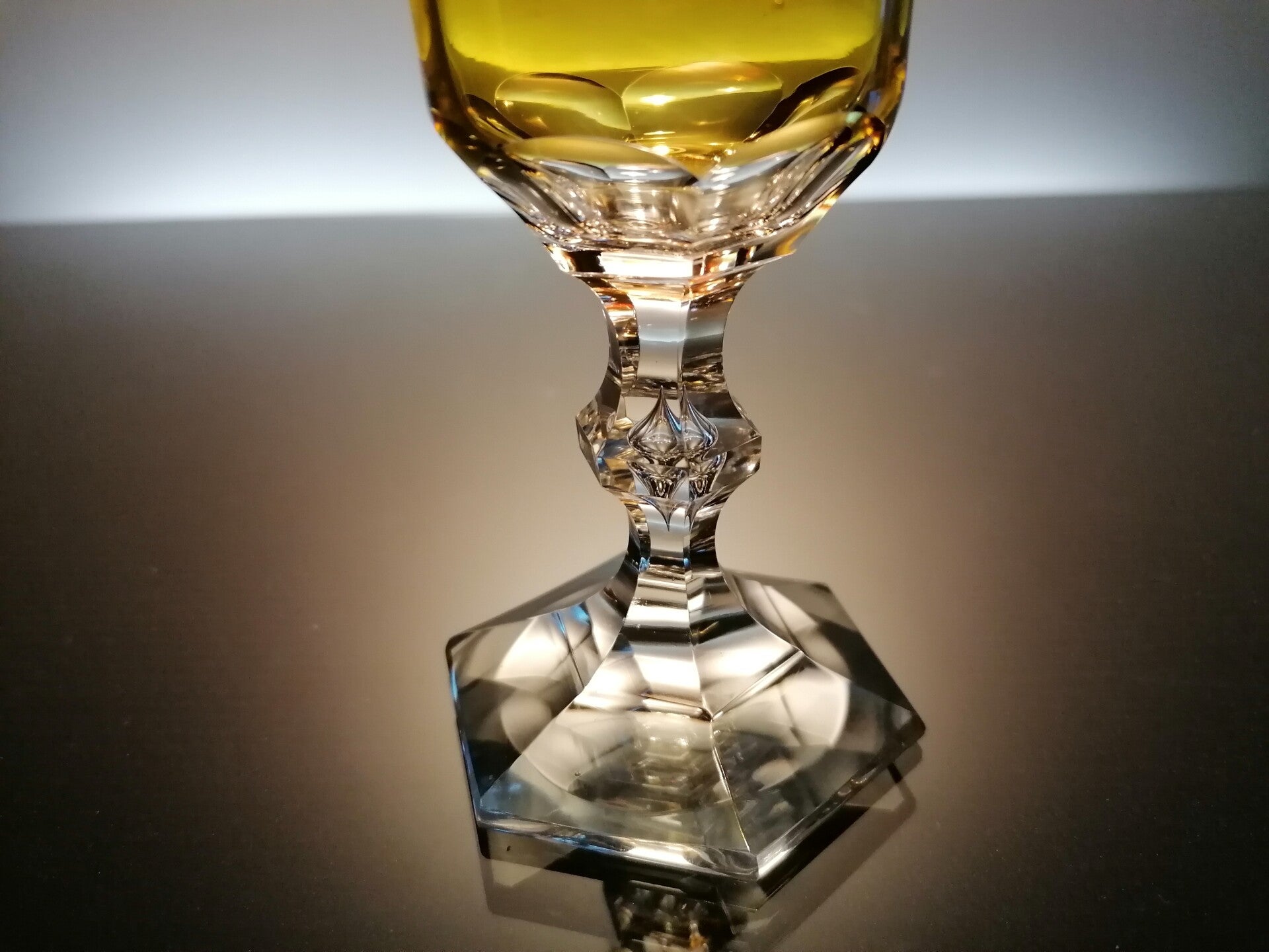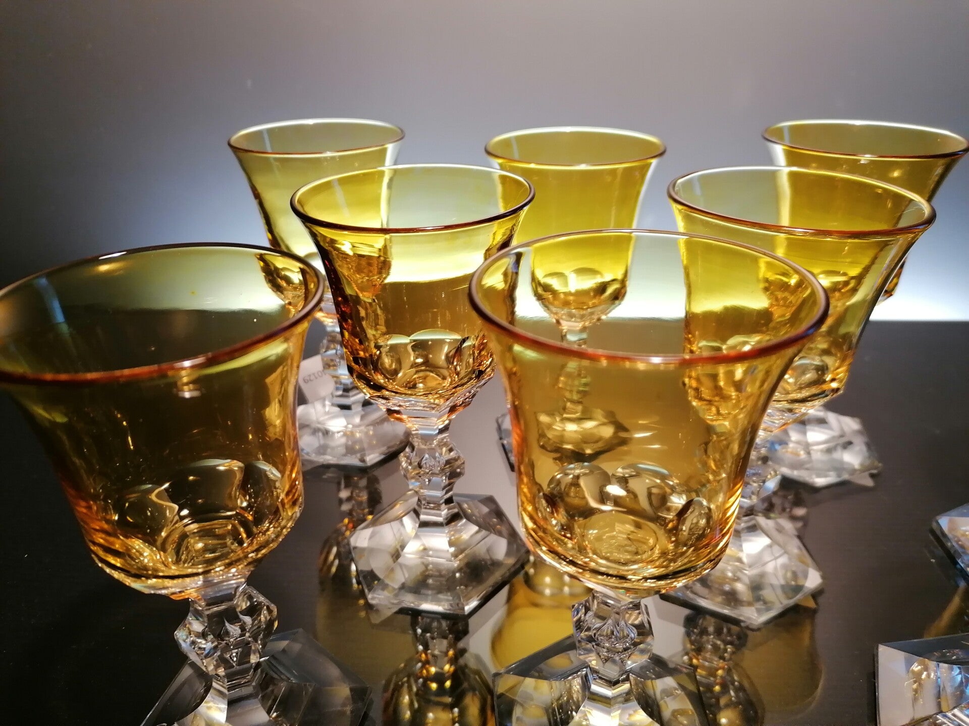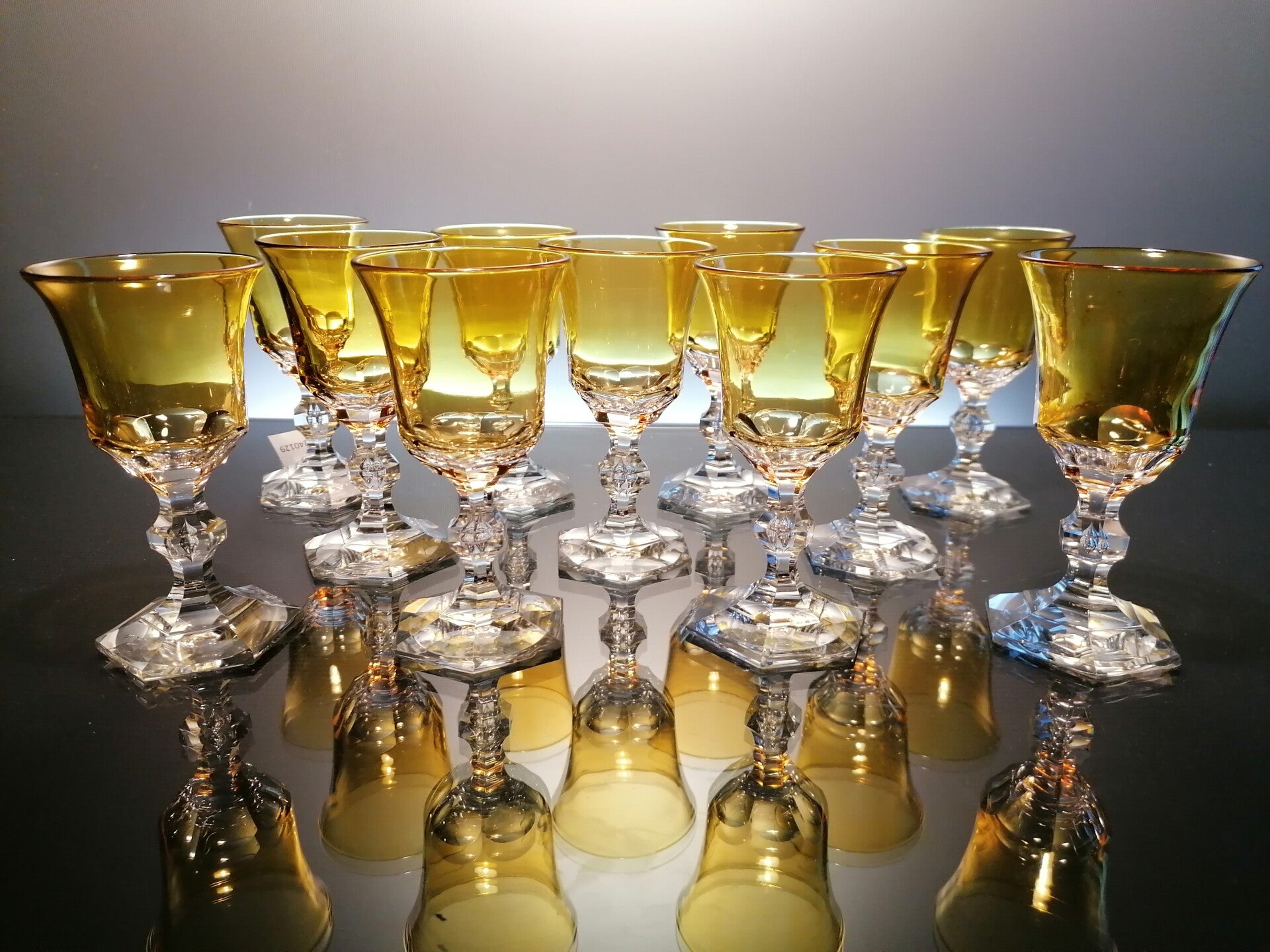11 yellow crystal wine glasses Val Saint Lambert « Metternich »