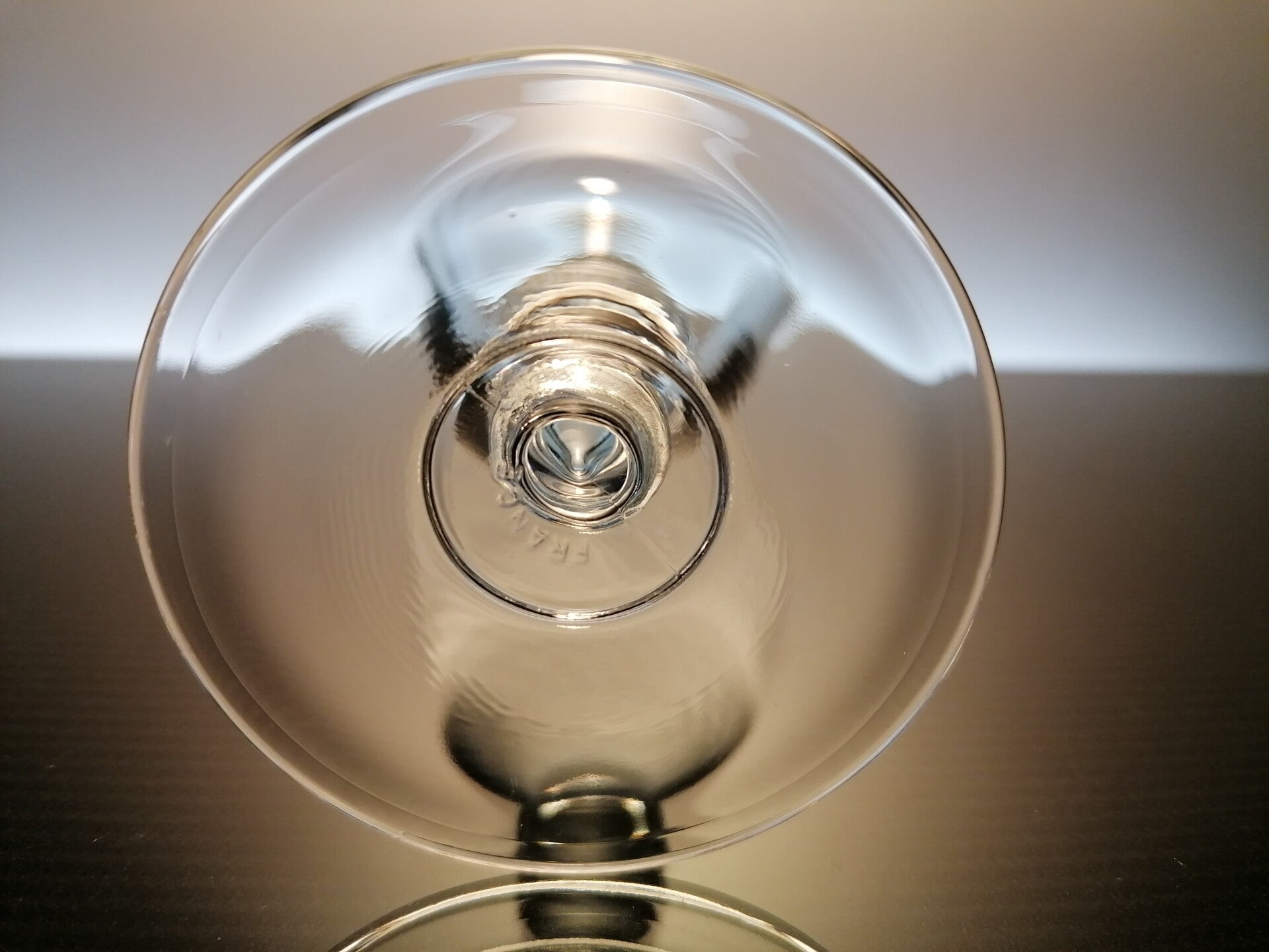 The glasses are mounted on a teardrop-shaped stem.