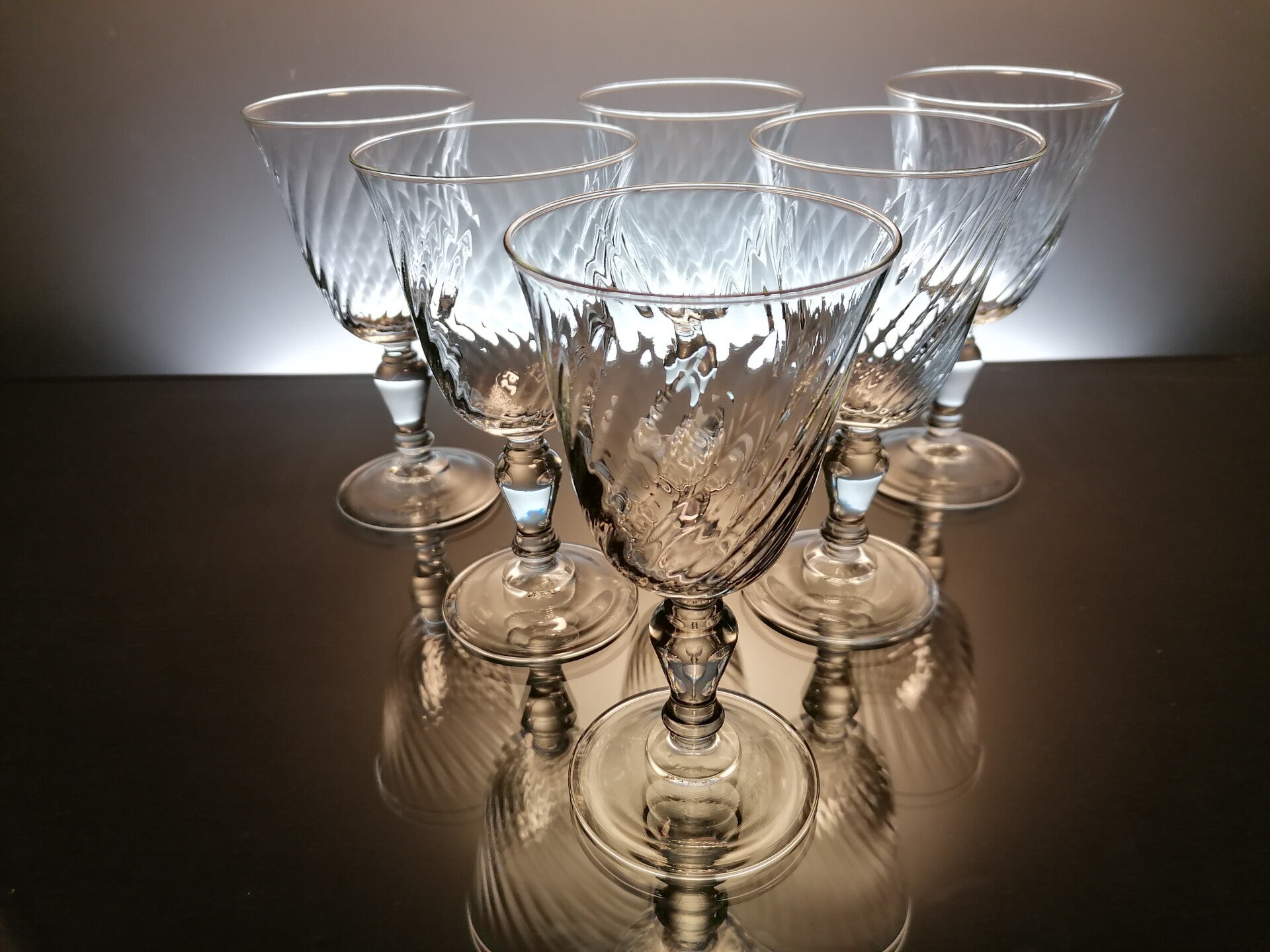 The glasses are made of cast glass and have a beautiful tulip shape with a twist effect in the glass.