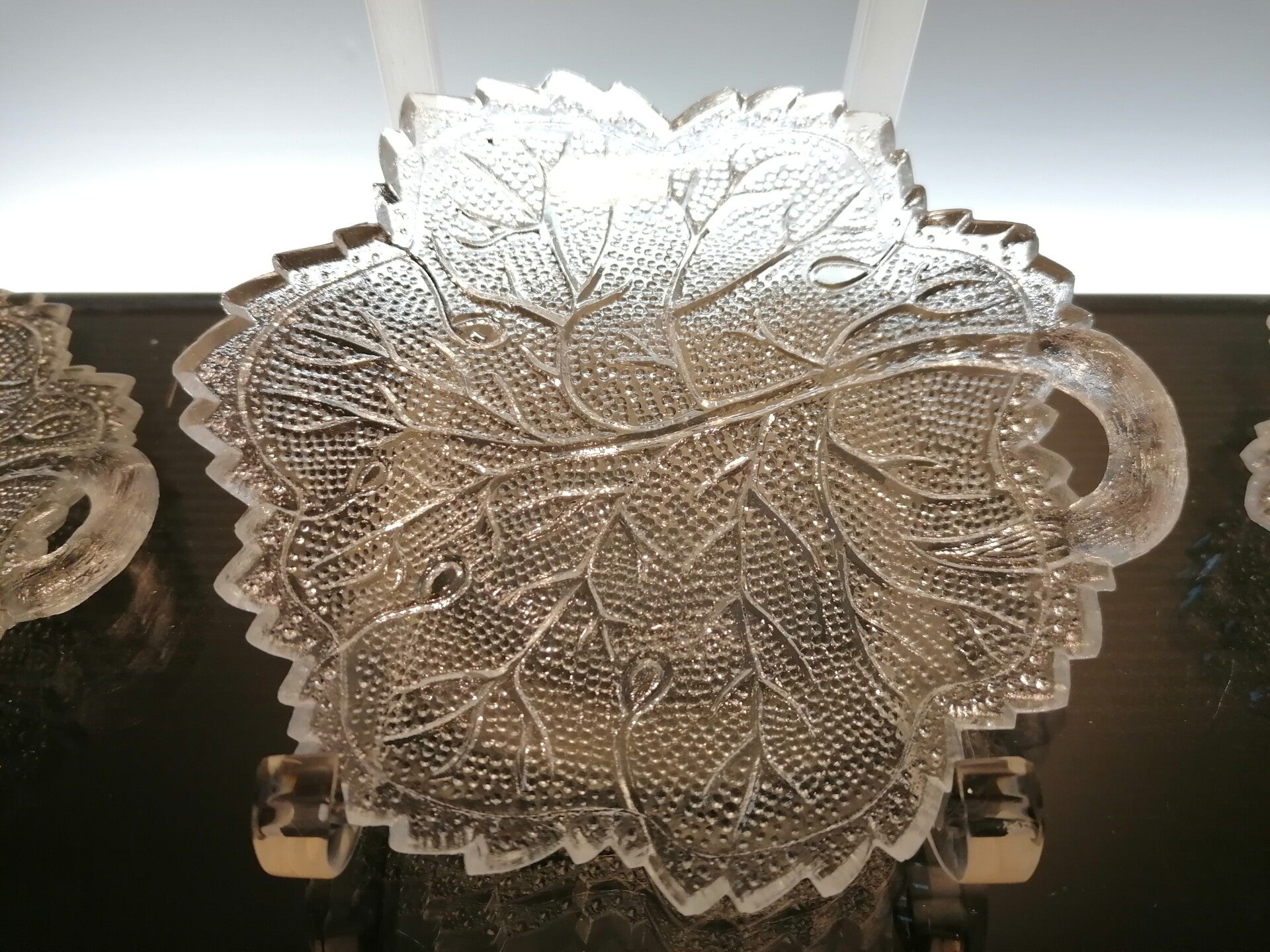 6 Art Deco glass serving plates “Tree Leaf”