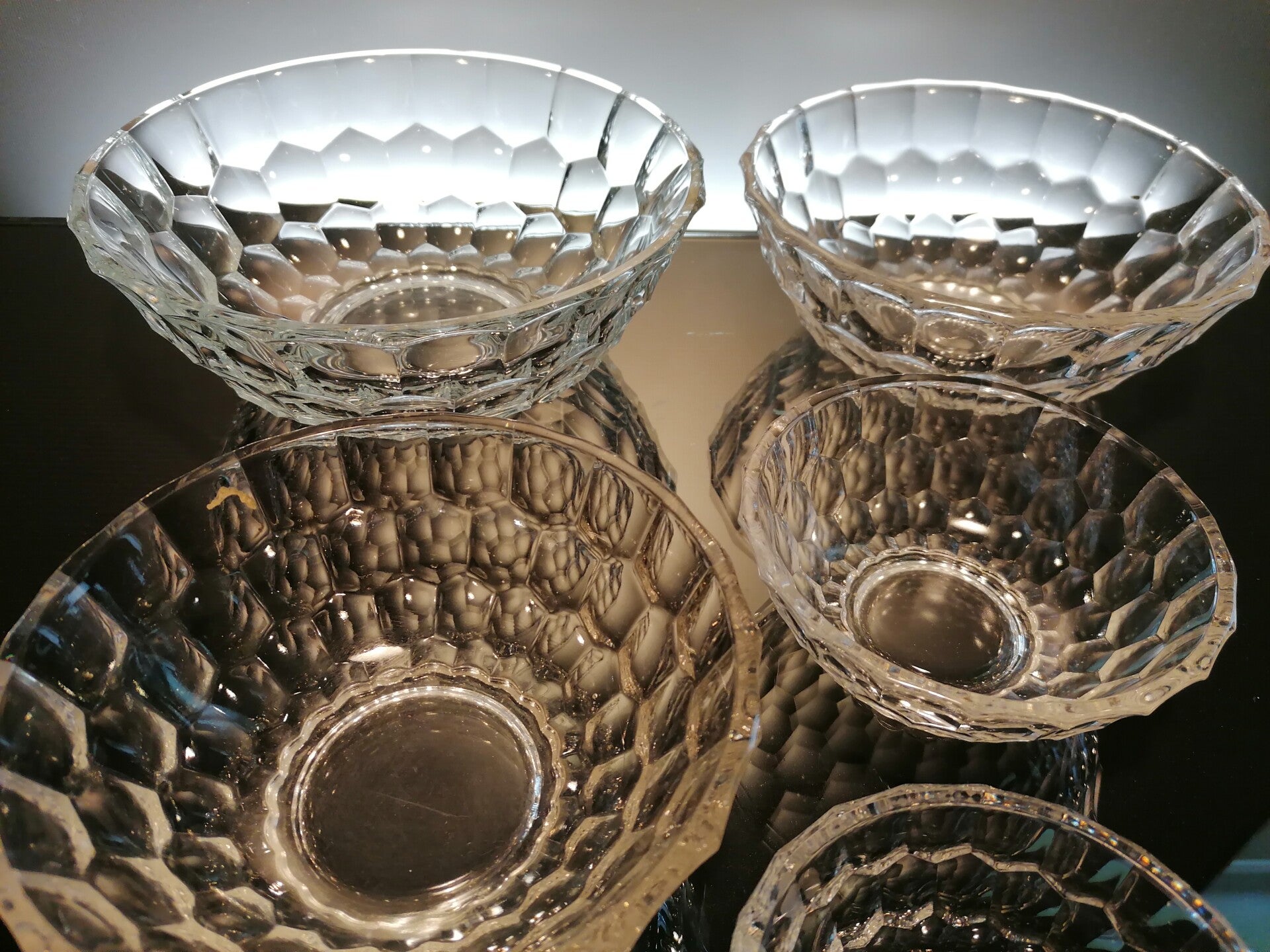 They are made from cast glass with a content of crystal to make a more beautiful shine.