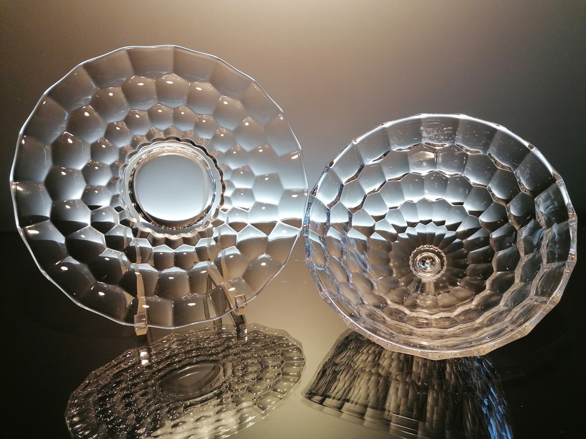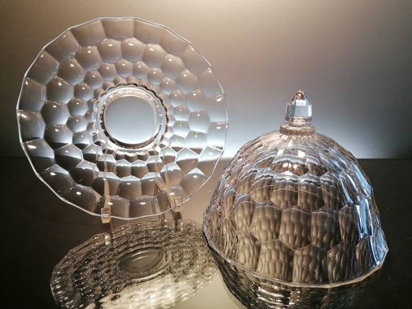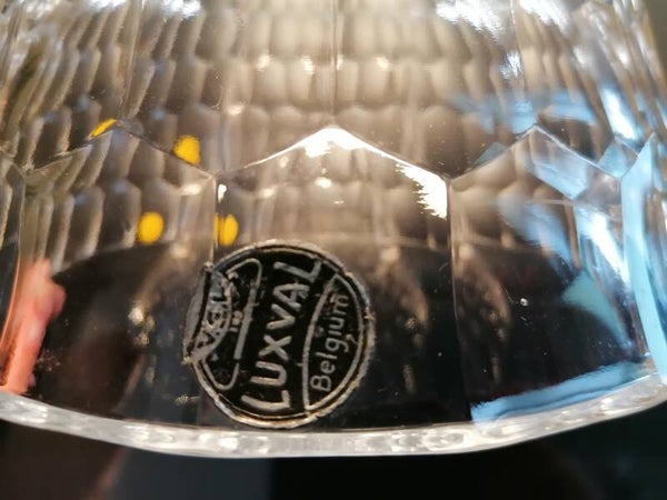 It is made from cast glass with a content of crystal to make a more beautiful shine.