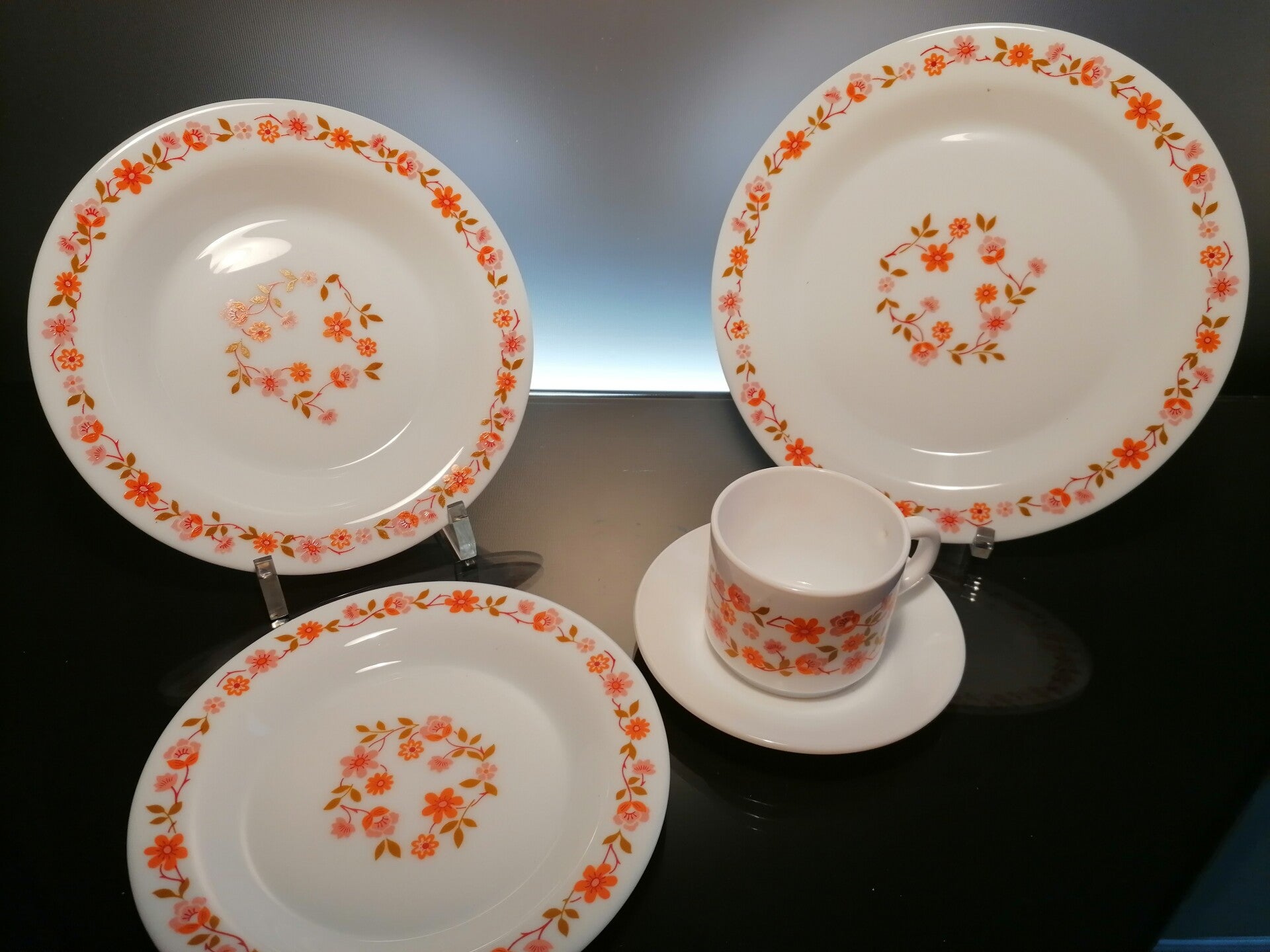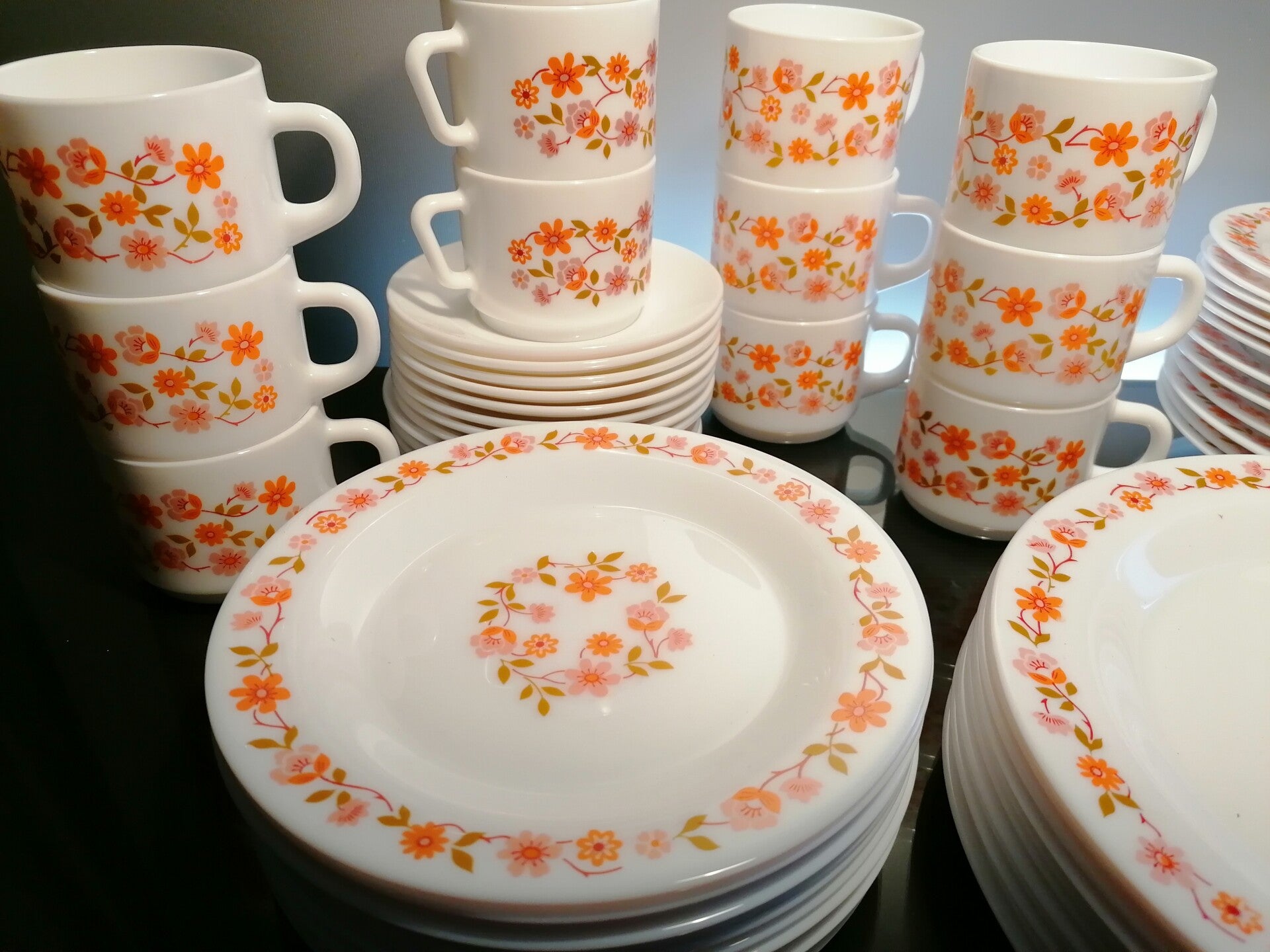 The "Scania" tableware is beautifully decorated with fine orange flowers.
