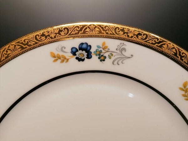 7 dinner plates “Limoges – Deux Feux or” with gold rim.