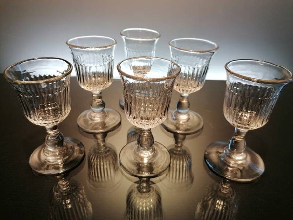 The glasses have a beautiful chalice shape and are finely decorated with vertickal lines "Creuses"