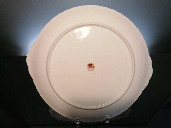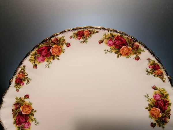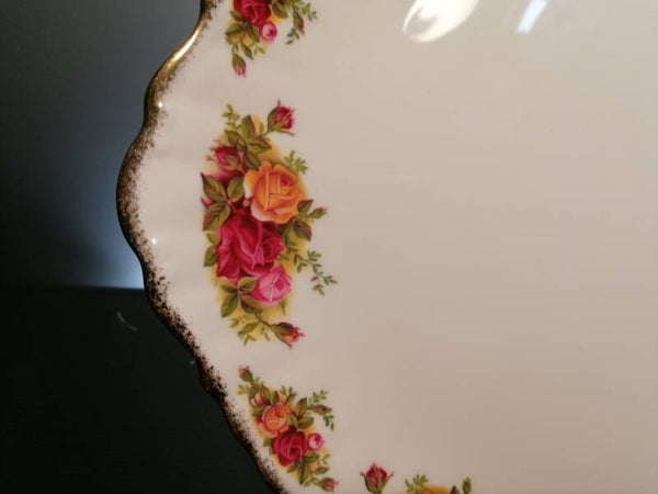 The serving plate is made of fine "Bone China" porcelain. These are beautifully decorated with roses and gold paint.