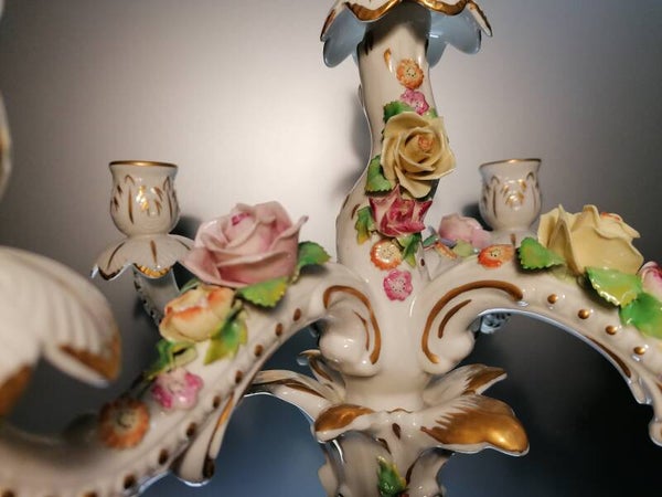 Very beautiful porcelain candelabra, made in the middle of the 20th century.