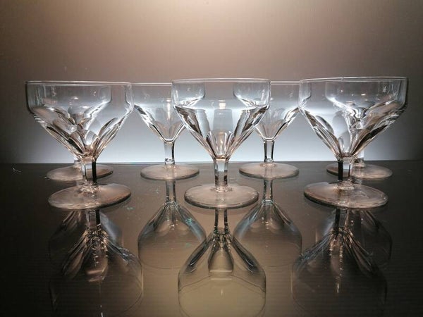 7 beautiful wine glasses, made at the first part of the 20th century in Belgium, by the famous crystal house “Val Saint Lambert”