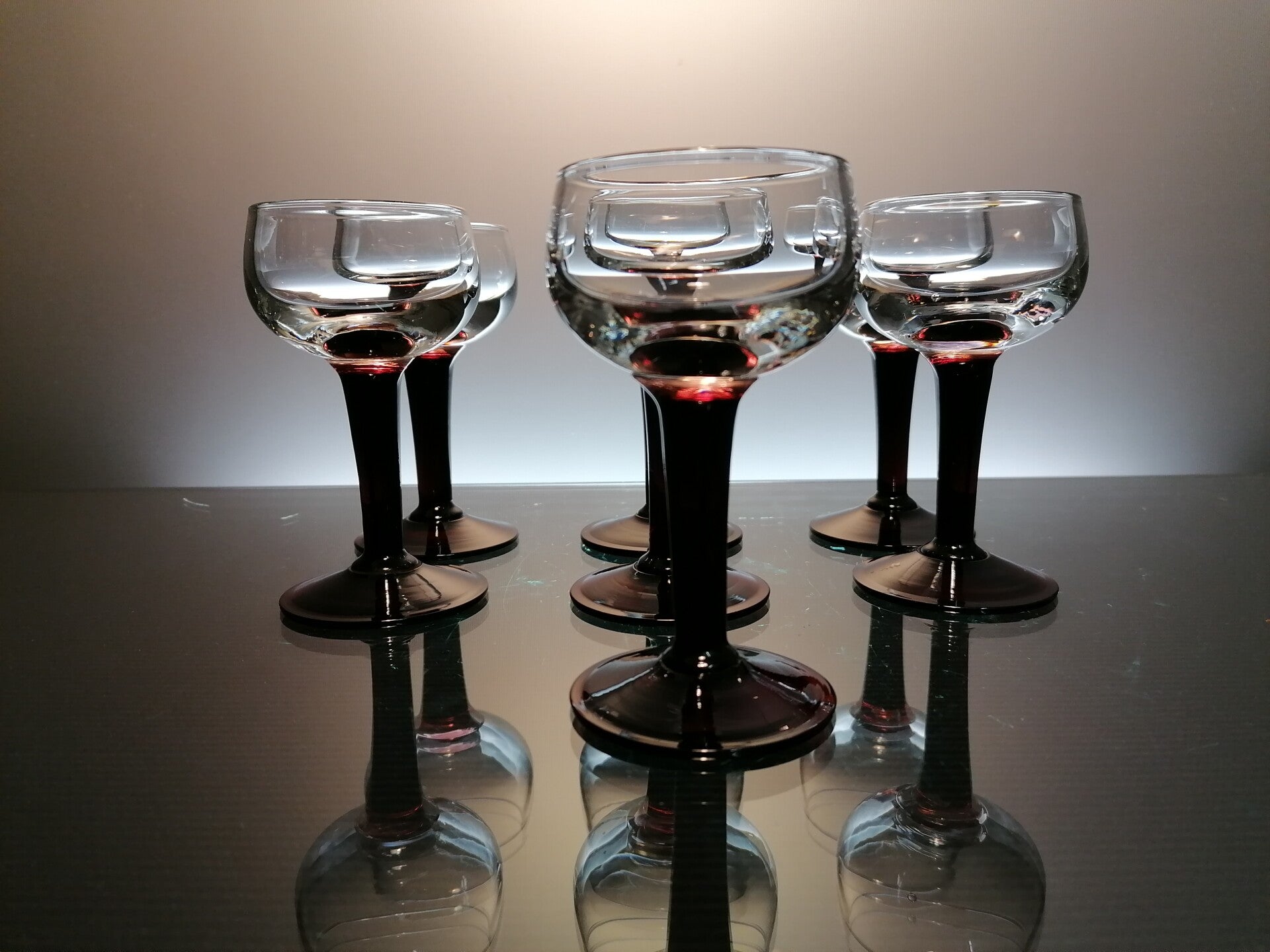7 very beautiful Amethyst colored wine glasses, made in the first part of the 20th century in the Netherlands.