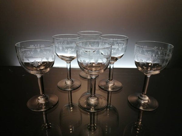 6 beautiful wine/port glasses are made in the second part of the 19th century, begin 20th century in France.