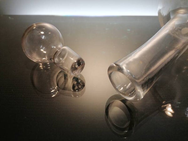 The carafe is made of mouth-blown glass with lead, this is the old crystal.
