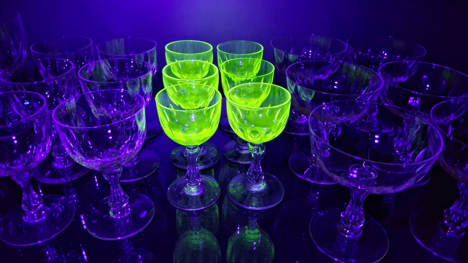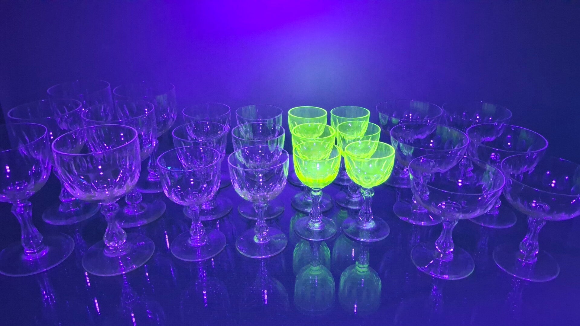 The set of glasses also includes a series of uranium-colored glasses.