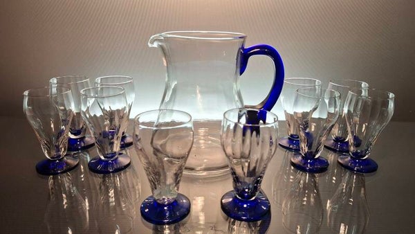 Very nice carafe with 10 matching port glasses, made at the beginning of the 20th century in Belgium