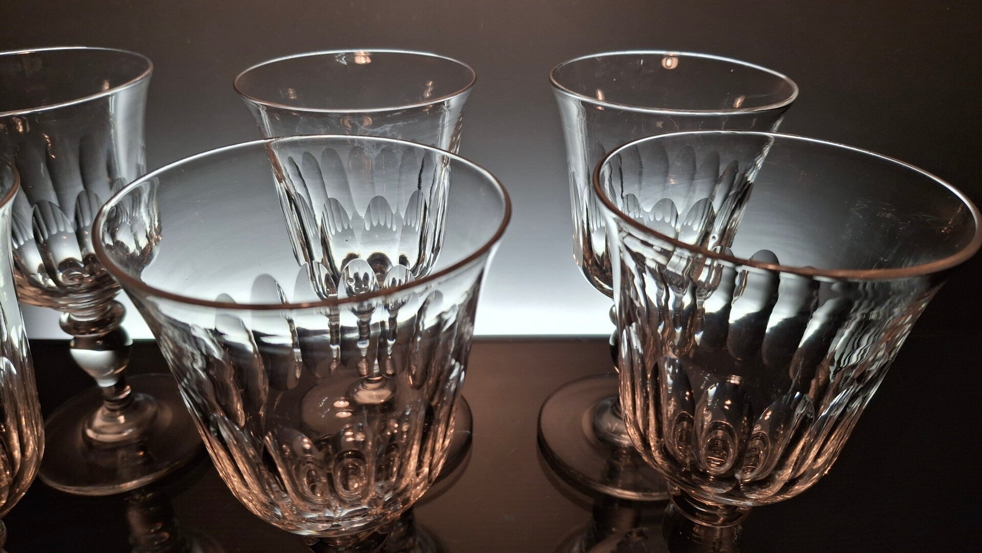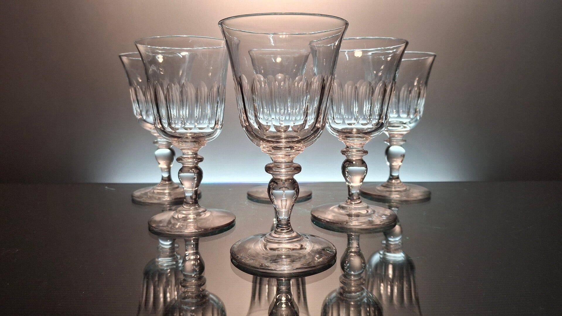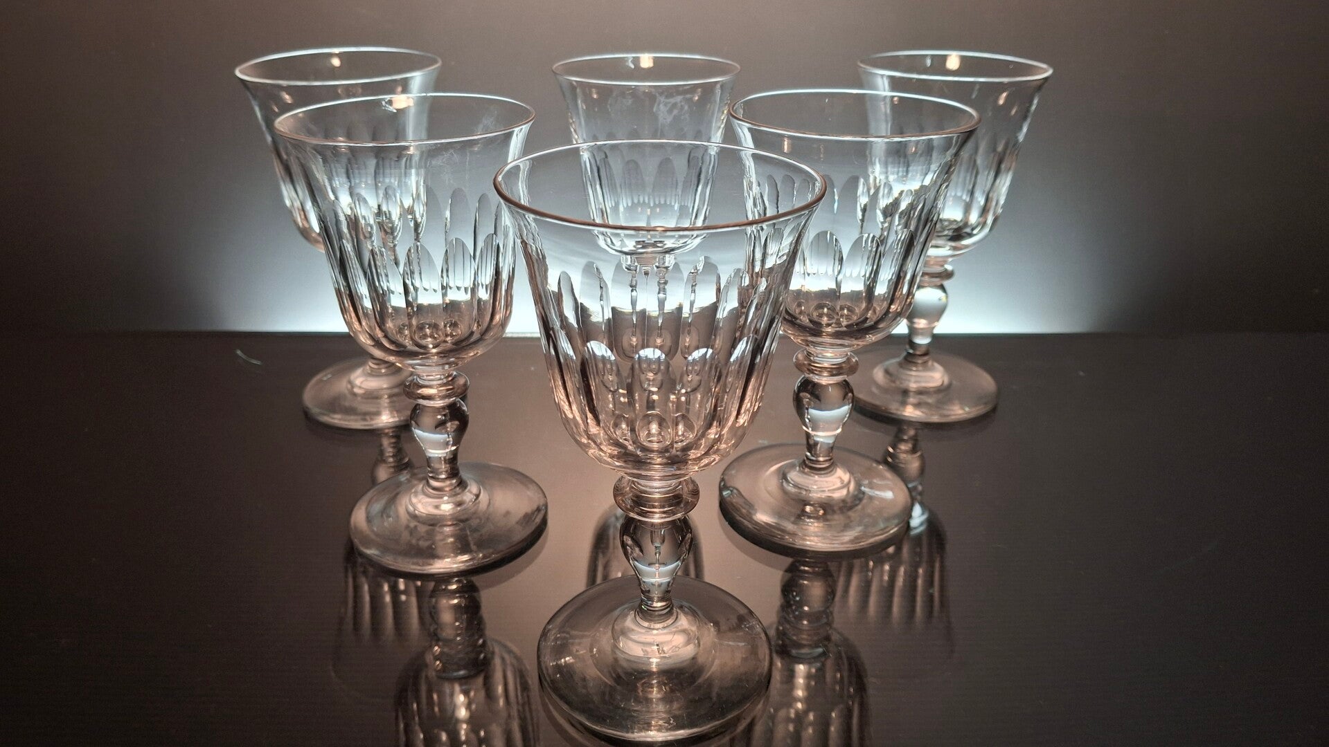 6 beautiful water glasses, made at the middle of the 19th century in France.