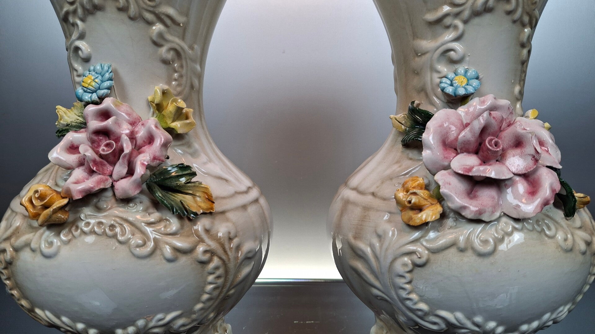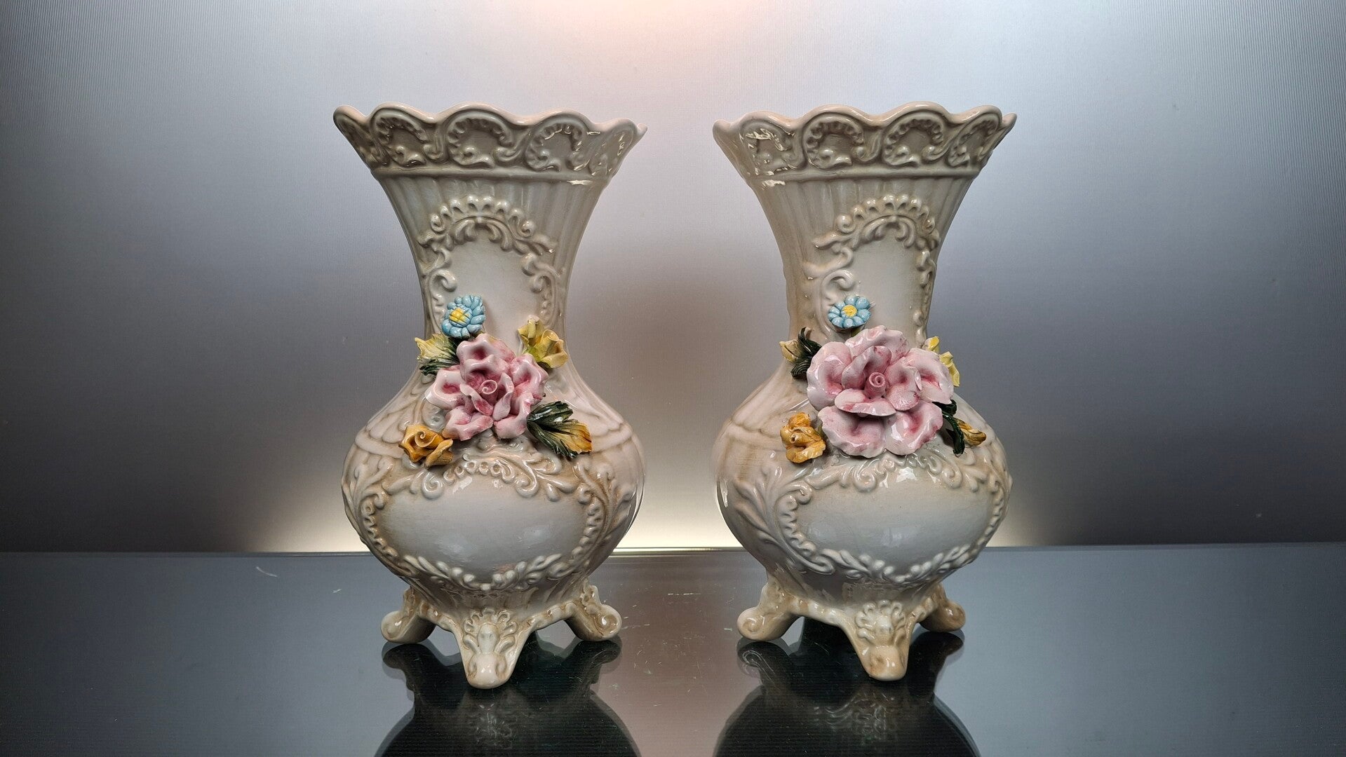 This ceramic vases were made in Italy in the middle of the 20th century by the famous manufacturer “Capodimonte”