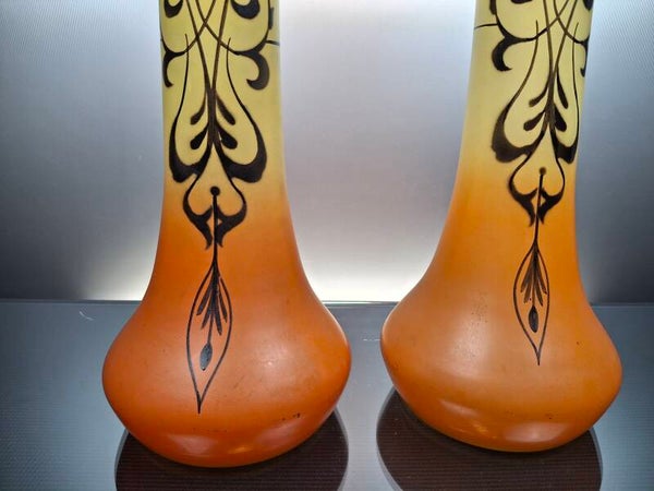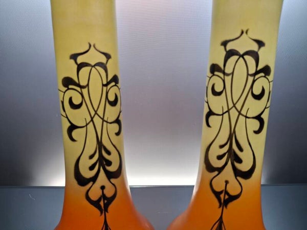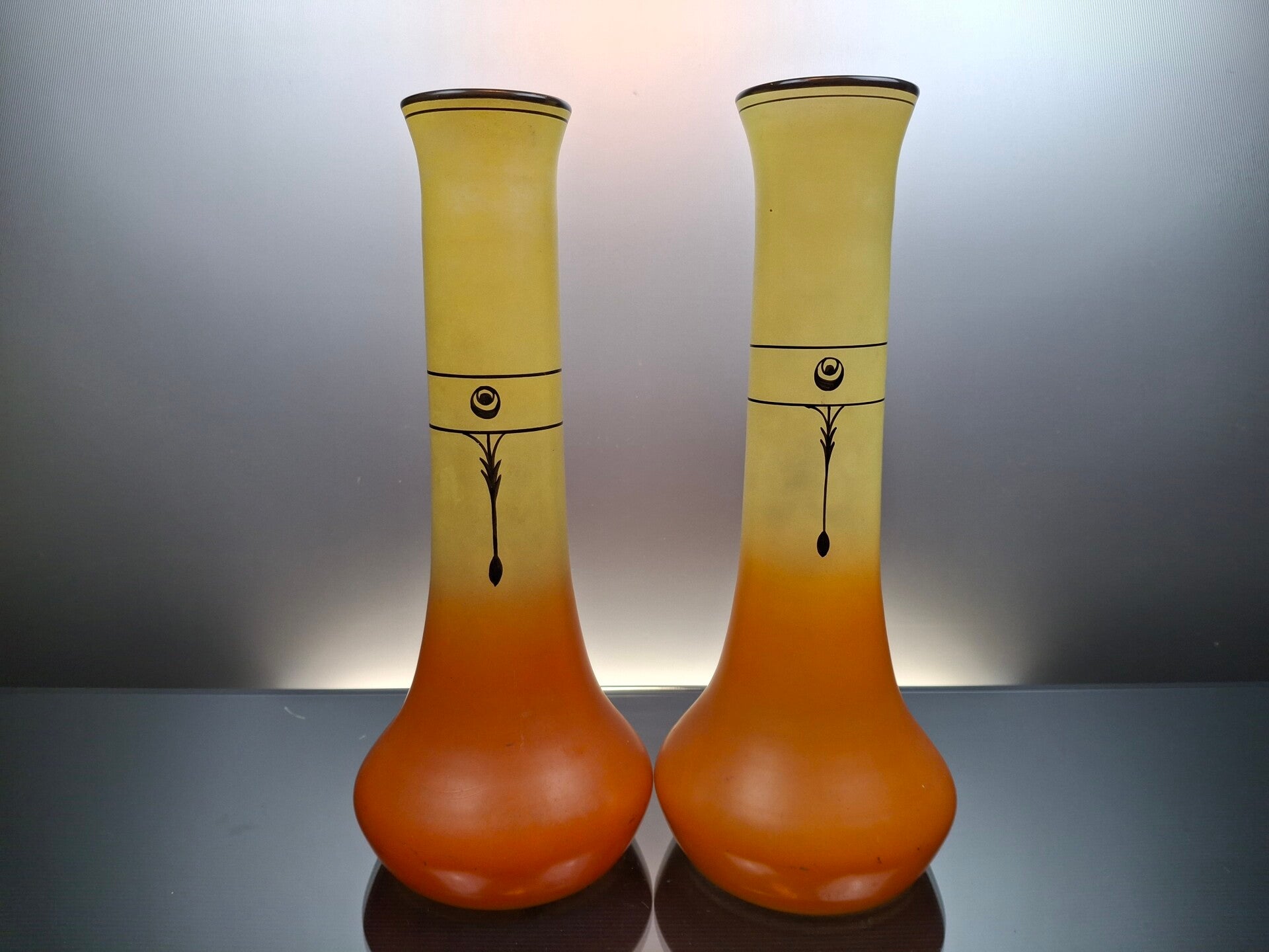 Very beautiful yellow – orange colored art deco vases, made at the beginning of the 20th century in Belgium.