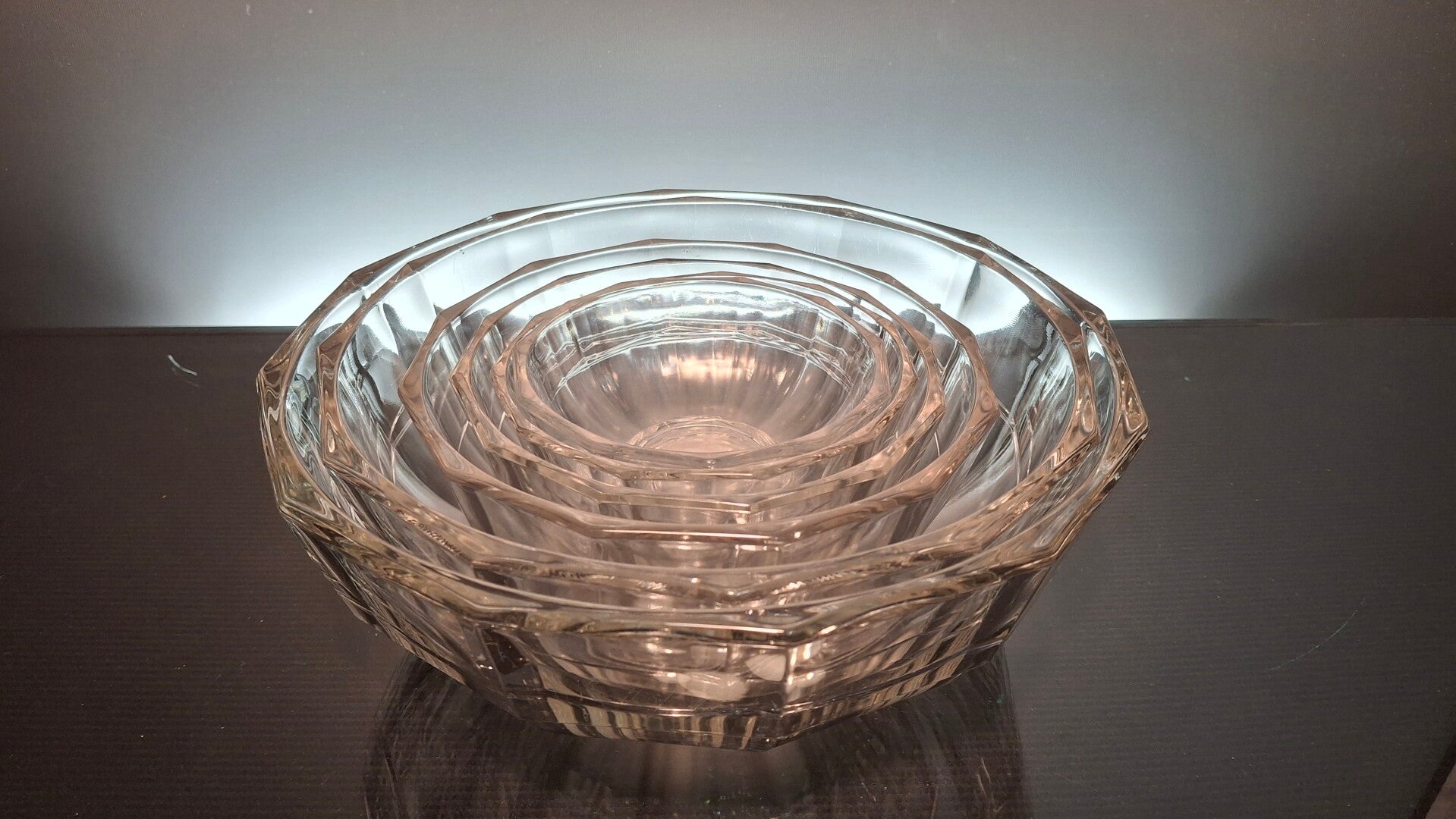 The set of 6 serving bowls is from large to small, so they fit nicely together for storage.