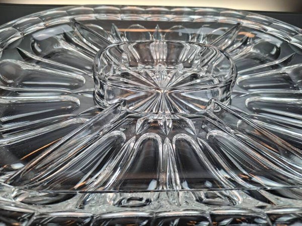 This beautiful crystal apero dish is made in the middle of the 20th century in Bohemia.