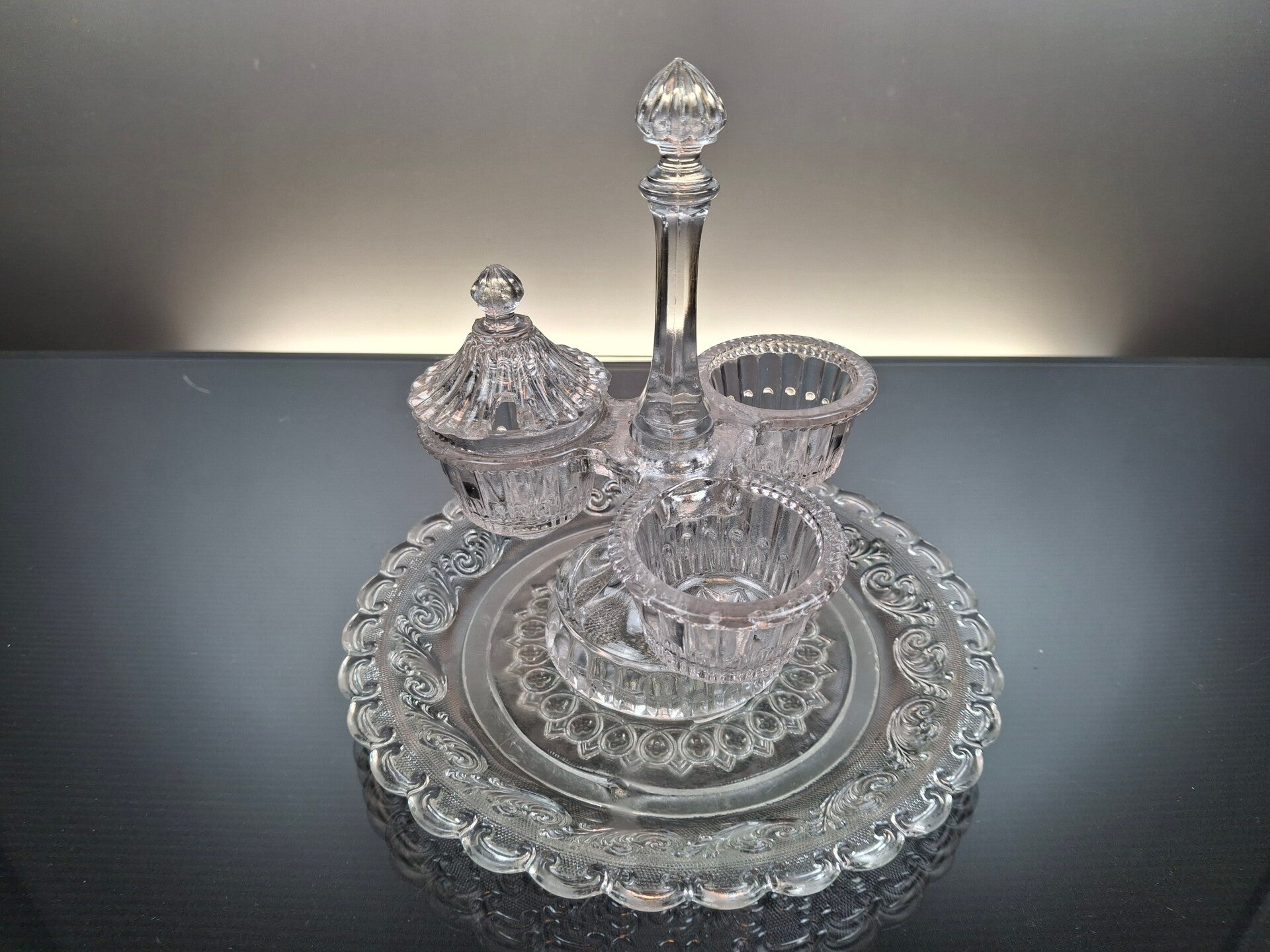A glass handle is mounted in the middle of the set to make it easier to move around the table, without touching the spices.