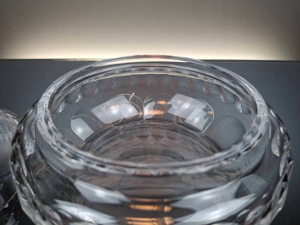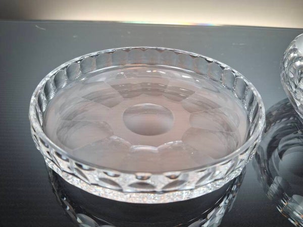 This rare candy box is mouth blown from clear crystal. During the finish, part of the crystal is then cut away so that beautiful geometric figures appear. These, in turn, give a beautiful sparkle in the light.
