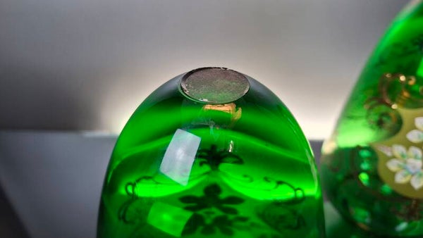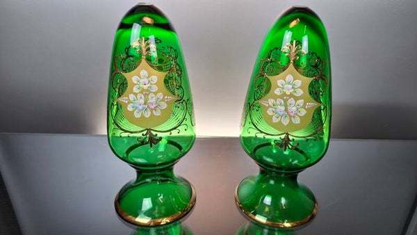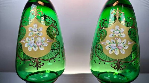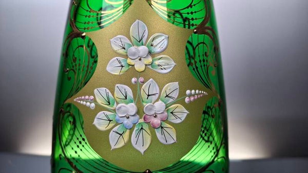 After blowing the vases, it was beautifully decorated with enamel flowers and 24kt gold paintings.