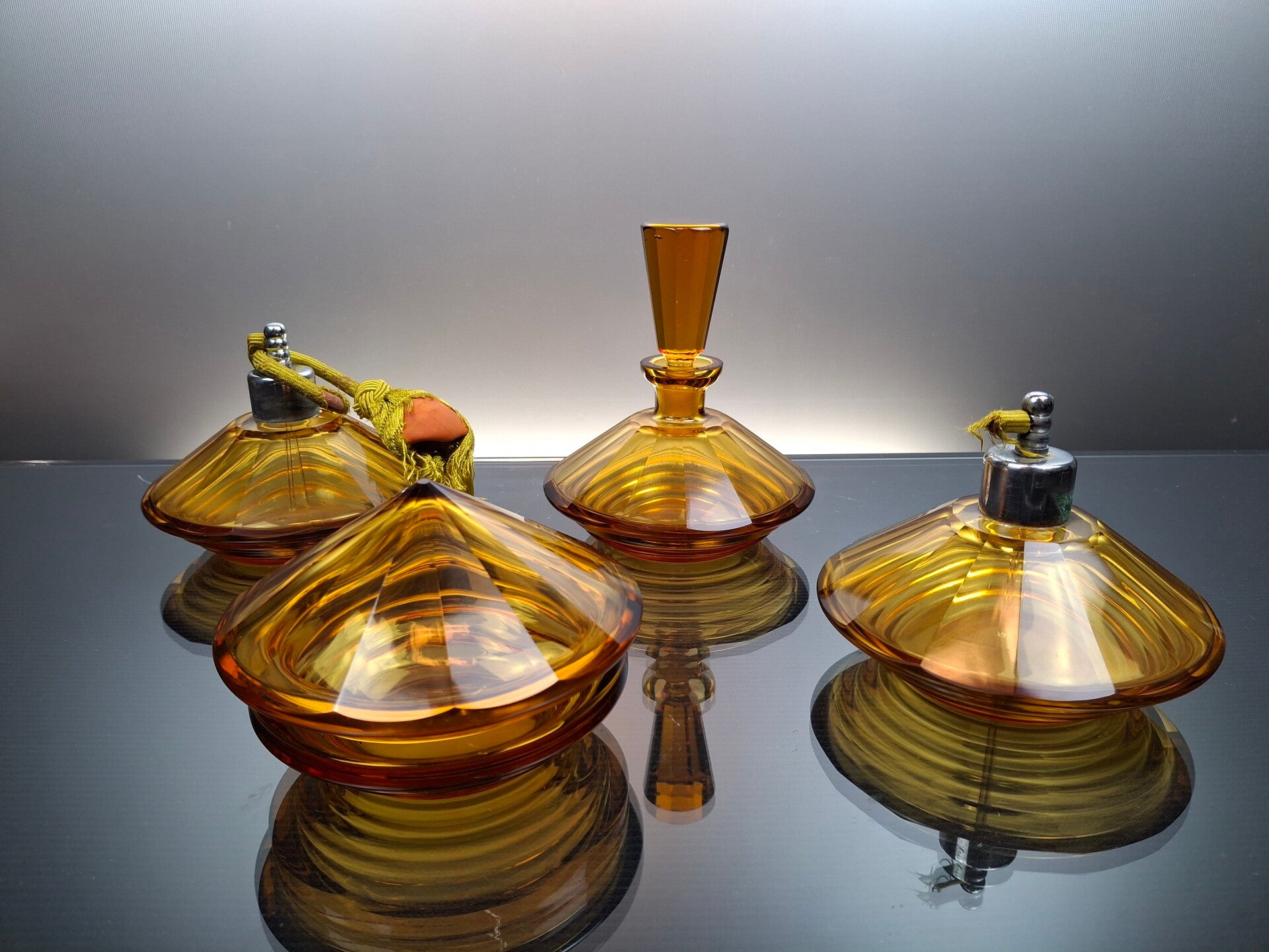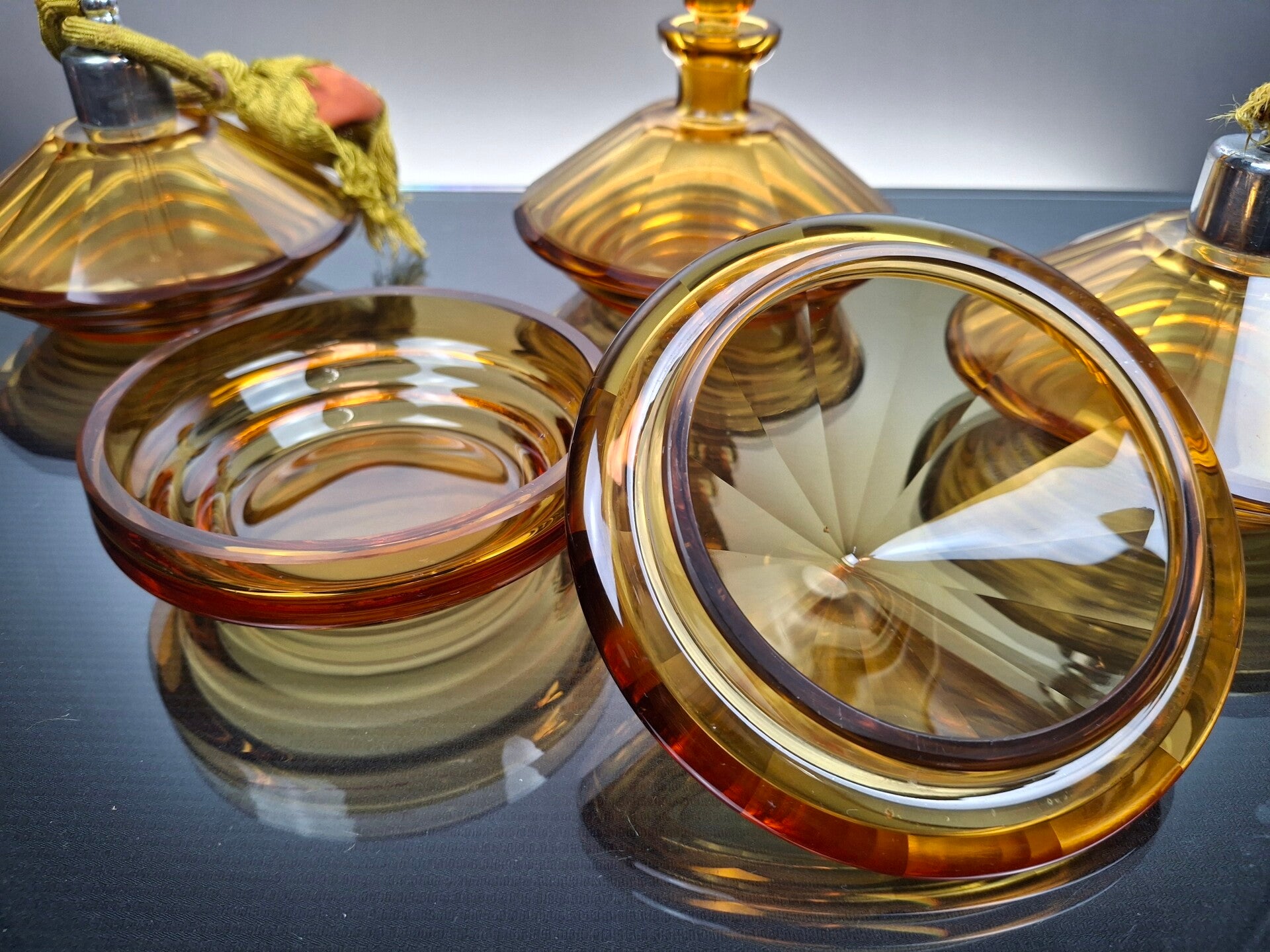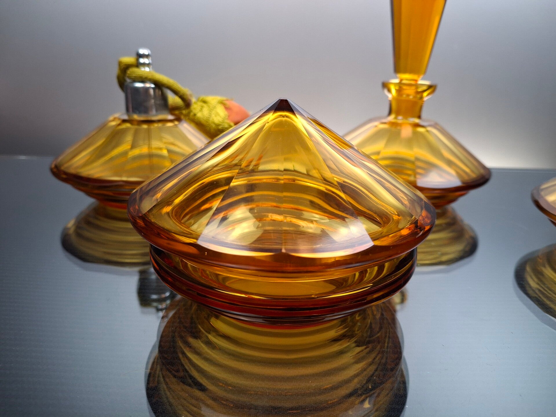 Very nice amber collored toilet set, made in the beginning of the 20th century in Czechoslovakia.