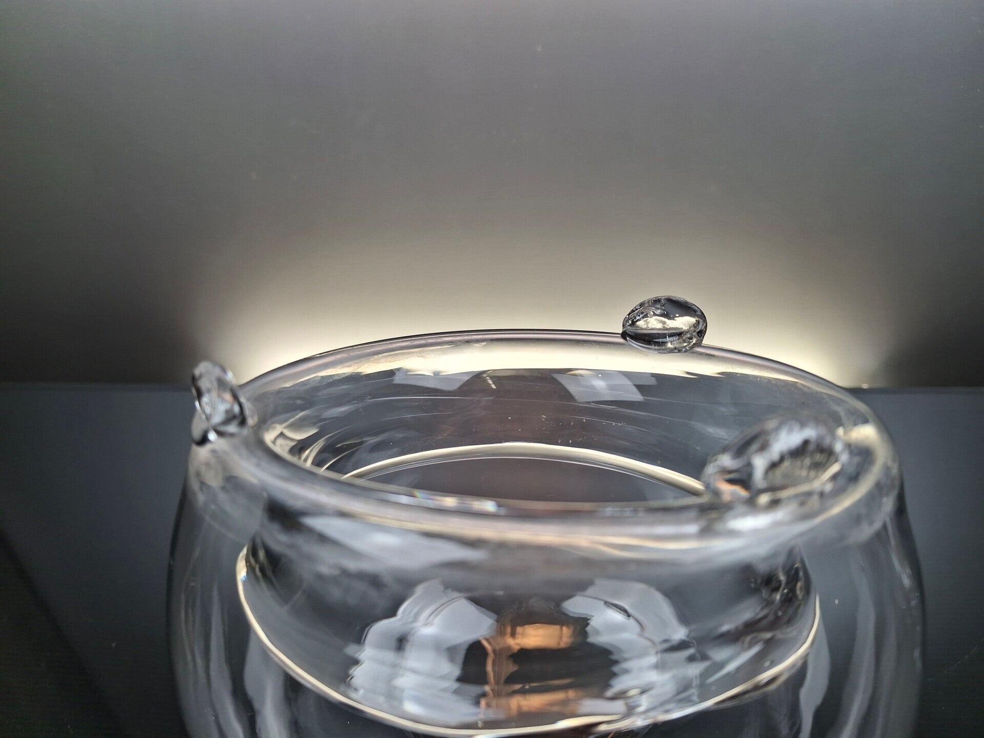 The wasp trap stands on 3 glass feet.