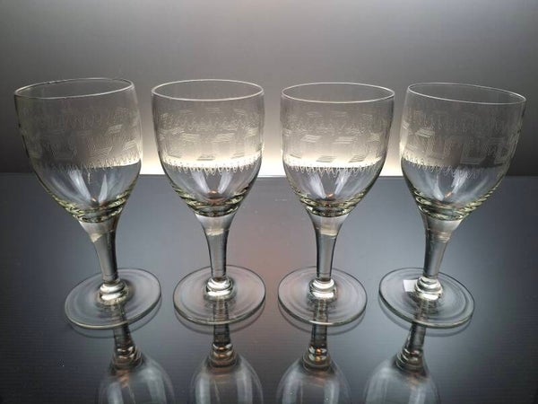 The glasses have a beautiful convex shape and are finished with engraved garlands around the glass, this we call the "Greek key"