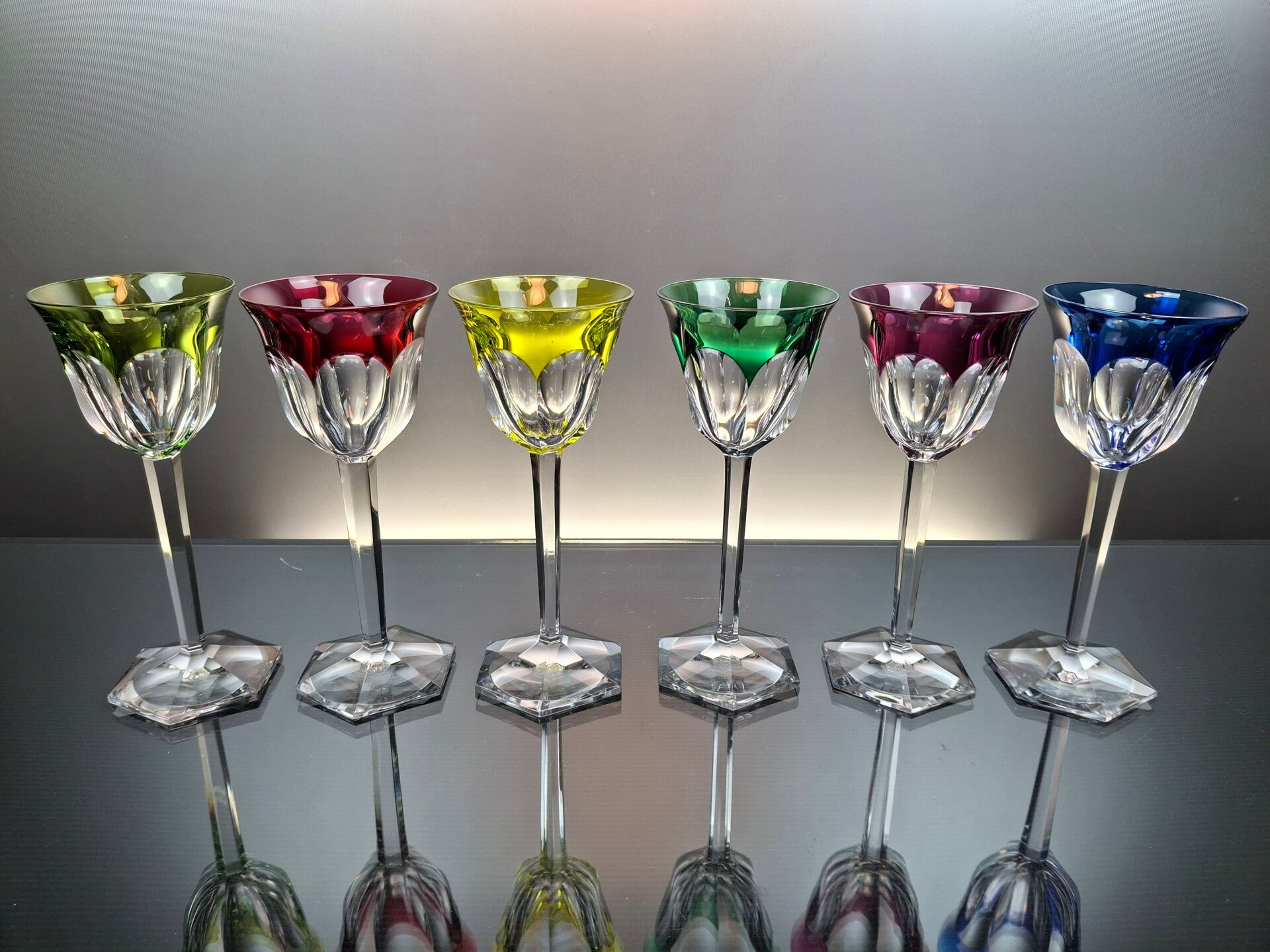 6 colored Belgian crystal wine / roemer glasses “Val Saint Lambert - Bayreuth”